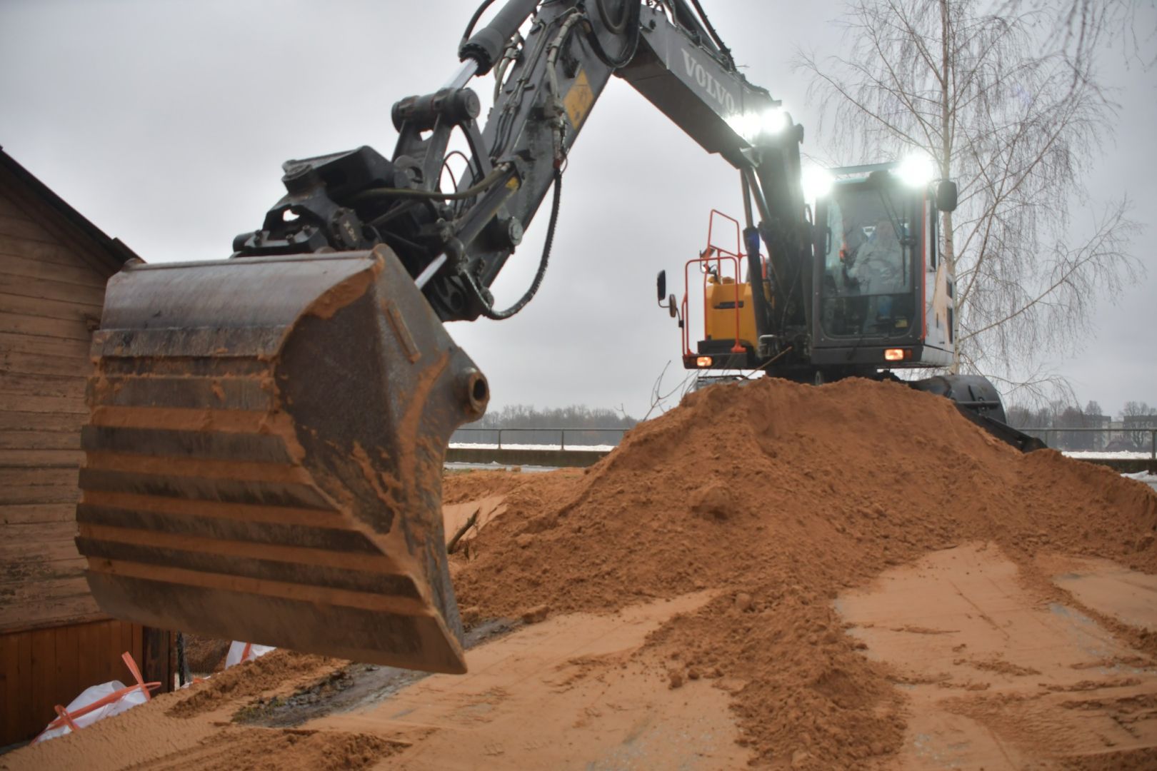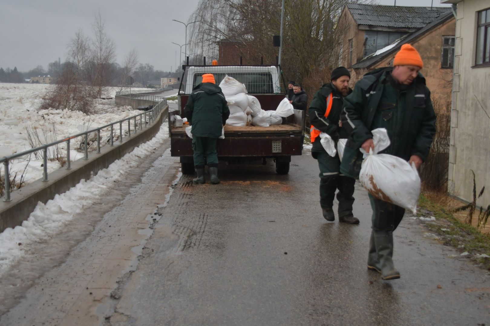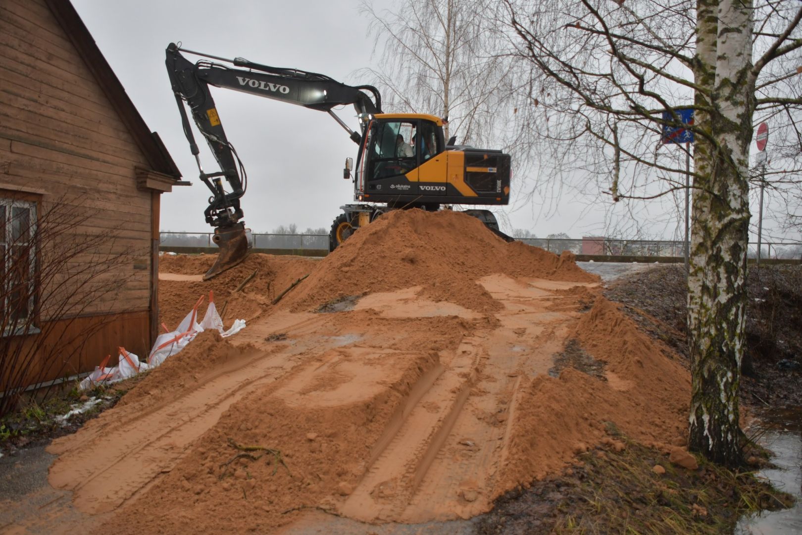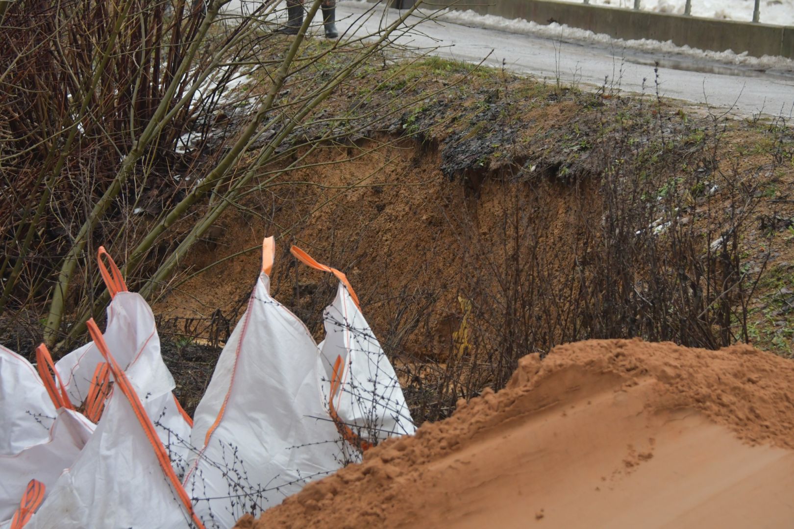 Daugavas aizsargdambim radušās sūces, tiek veikta dambja stiprināšana