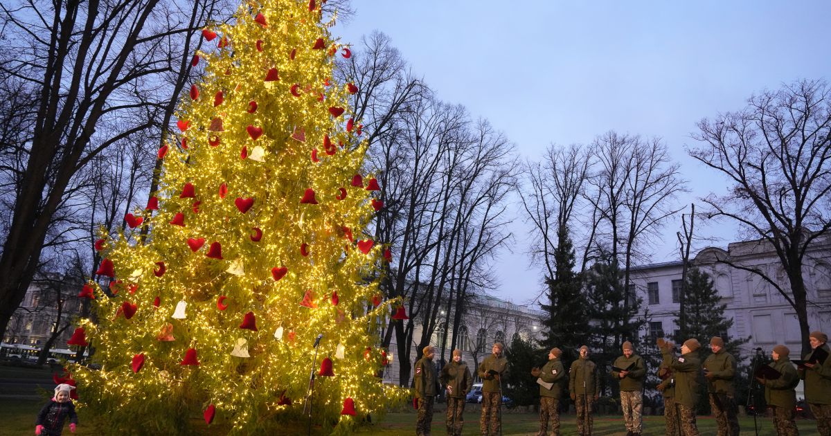 Galiņu ģimene no Jēkabpils novada iededz svētku egli prezidenta pilī