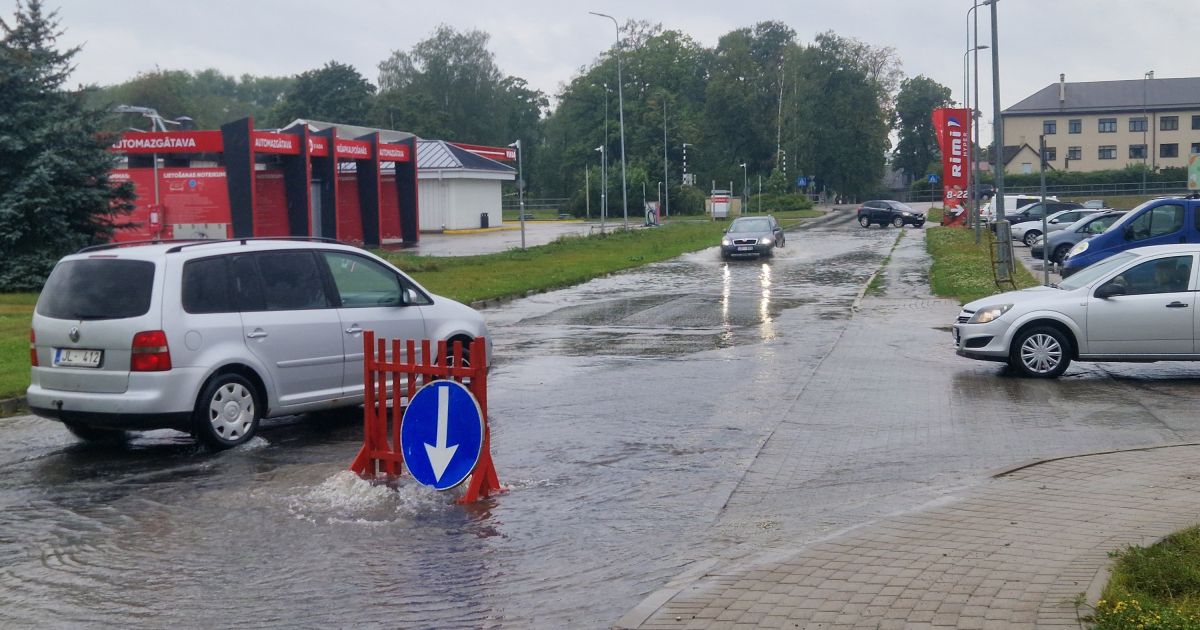Jēkabpilī applūst ielas un stā..