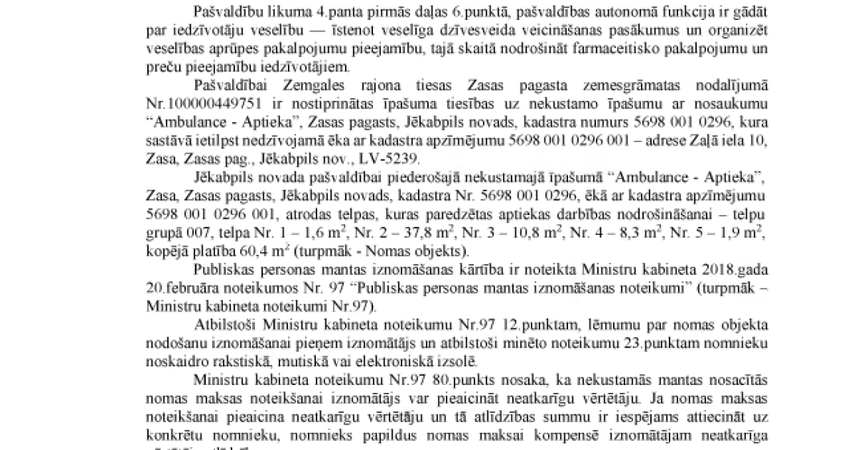 Lēmums par nomas tiesību izsoles noteikumiem Zasā