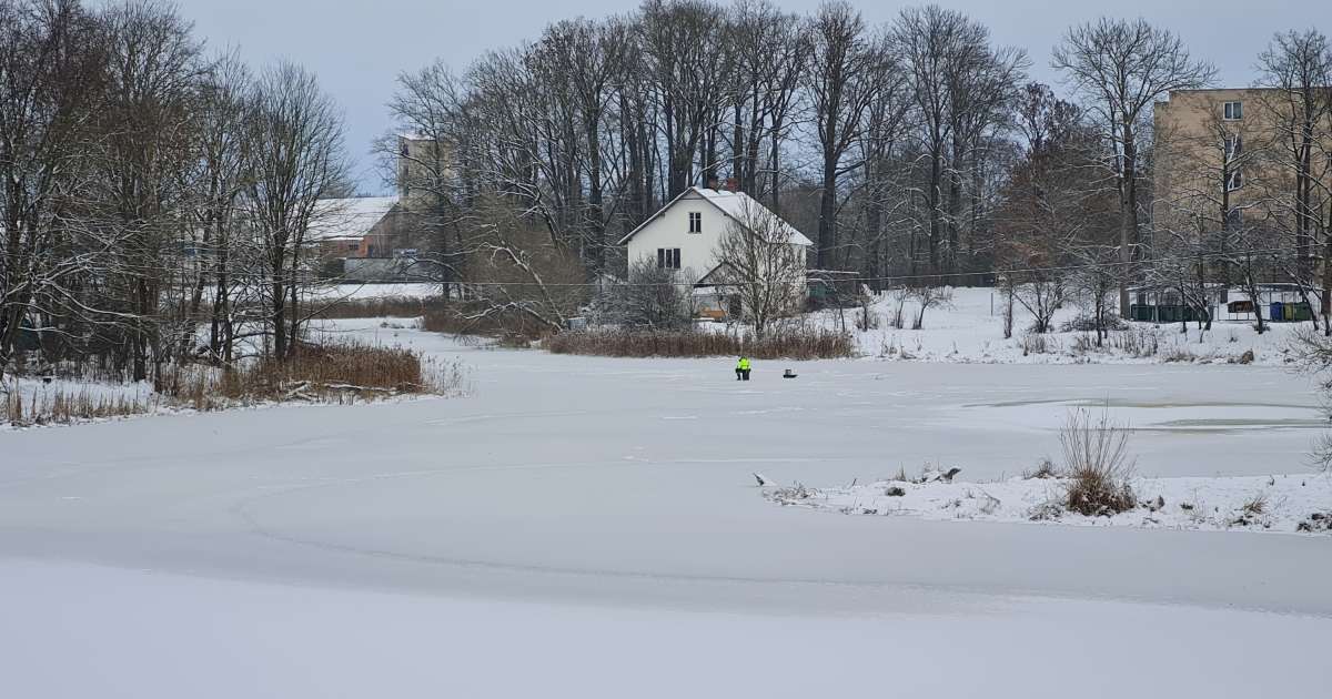 Jēkabpilī uz Pils dīķa ledus manīti pirmie pārgalvīgie makšķernieki 16