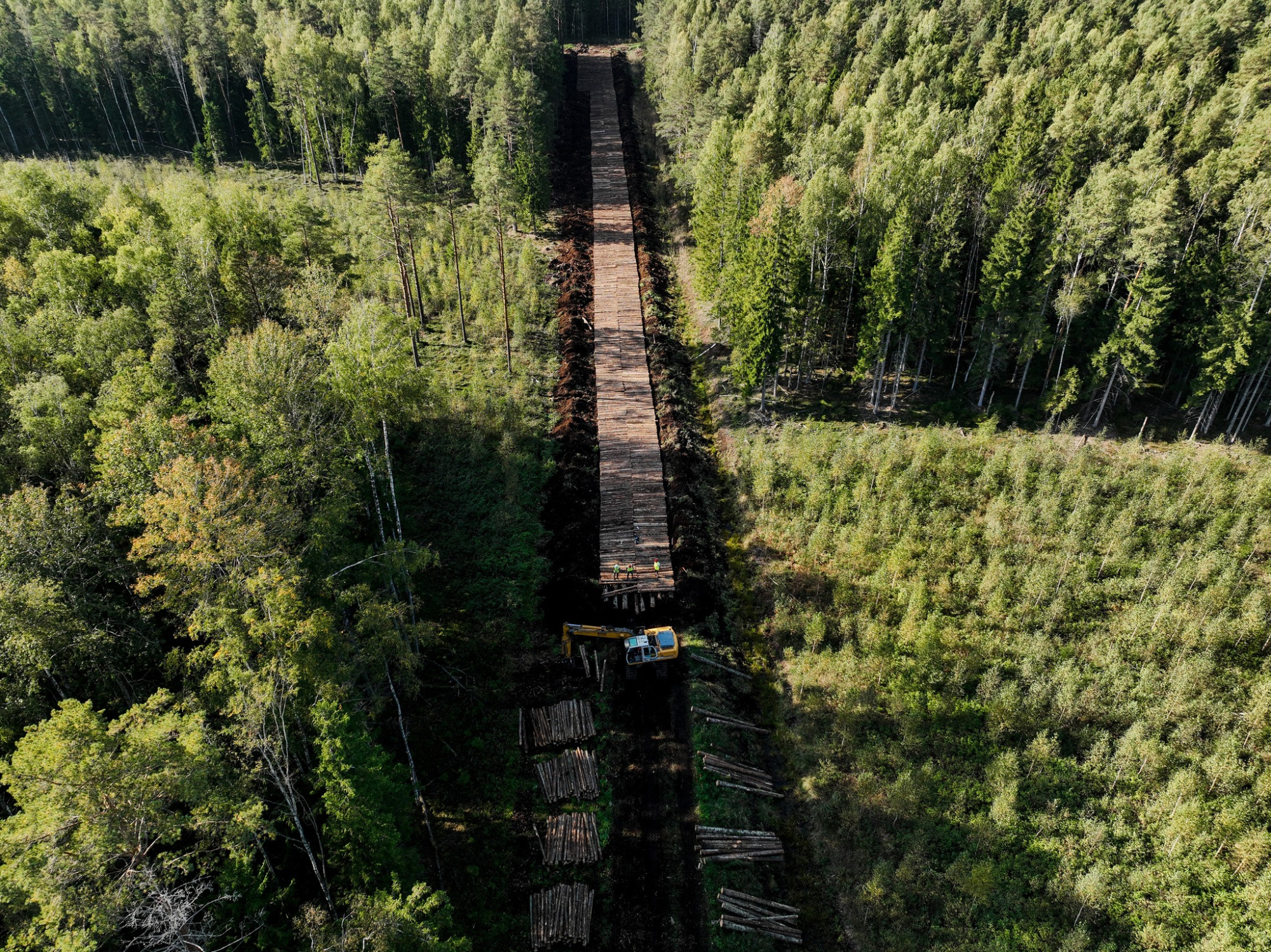 “Pieredze baļķu klāja izmantošanā zemas nestspējas augsnēs mums jau ir, taču, atšķirībā no citiem objektiem, kuriem baļķus klājam tikai brauktuves noteiktos posmos, šim objektam baļķu klājums tika paredzēts visā ceļa garumā un arī paplašinājumos un nobrauktuvēs. Līdz ar to kopējā baļķu klāja platība sasniedz 1,3 hektārus. Ja kokmateriālus saliktu vienu aiz otra, tad tā garums būtu gandrīz 170 kilometri, kas līdzvērtīgs attālumam no Līvāniem līdz Rīgai,” skaidro LVM Latgales reģiona meža infrastruktūras vadītājs Māris Matisāns.