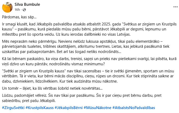 Jēkabpils novada pašvaldības priekšsēdētājs apstiprina, ka sarunas bijušas un rasta kopīga valoda. Kādreiz pasākums tika rīkots kā daļa no pagasta svētkiem, bet šobrīd “Krustpils kauss” vairs nav daļa no pagasta svētkiem, bet tiek rīkots kā biedrības iniciēts pasākums.