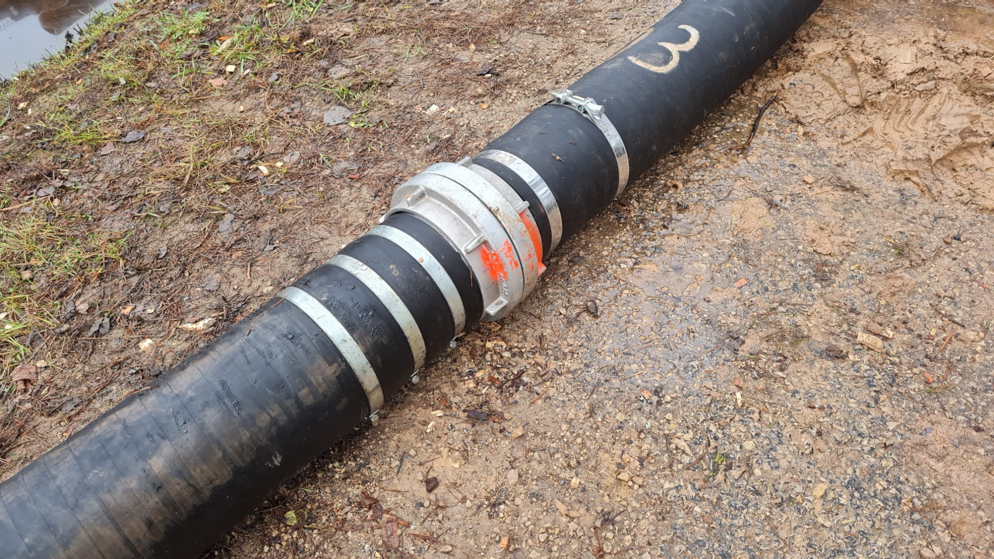 Pumpē ūdeni pa šlangām.
