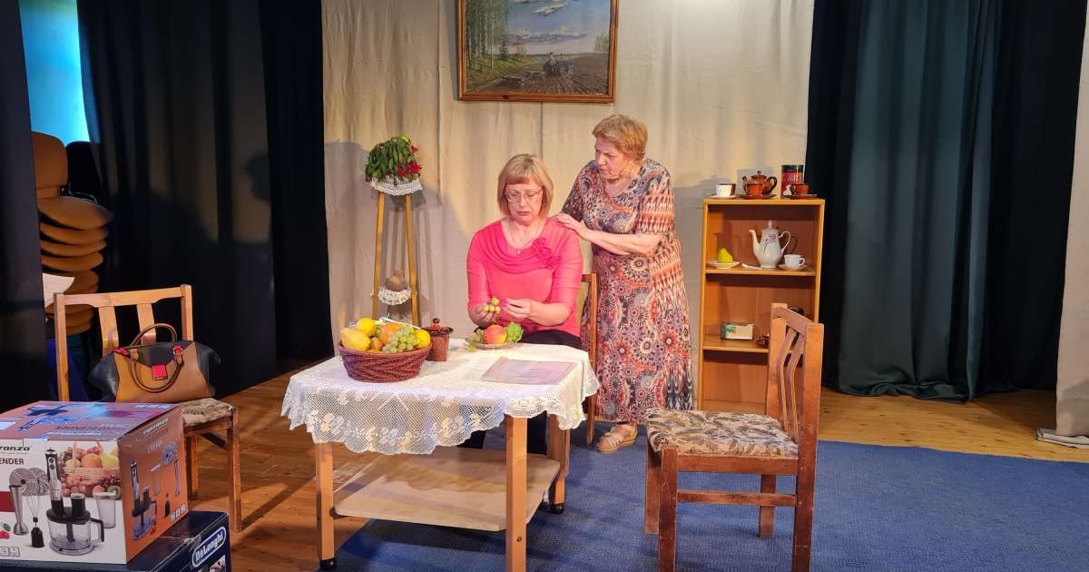 “Izrāde stāsta par tādu ne pirmā svaiguma meiteni, kuru grib izprecināt,” stāsta amatierteātra aktrise Ineta Survillo. “Viņa atradusi līgavaini, bet līgavas radi ir turīgi, situēti un bišķiņ brāķē to līgavu, grib glaunas kāzas. Viņi negrib vieni par to maksāt. Par to arī viss apkārt grozās. Es šajā izrādē tēloju to ne visai smuko, padzīvojušo meiteni, kura jāizprecina pēdējā brīdī. Vairs nav laika gaidīt.”