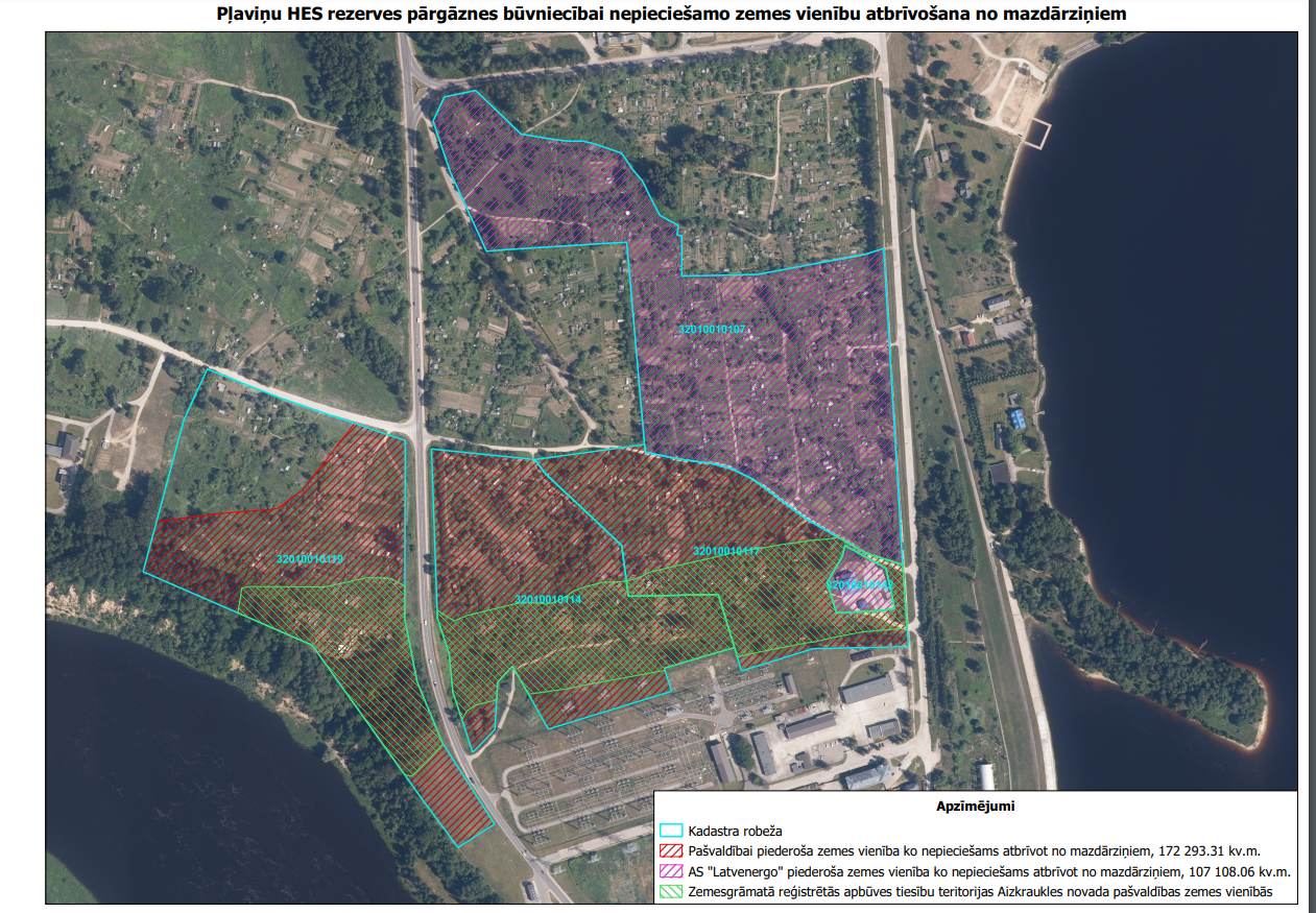 Lai gan pašu pārgāznes būvniecību plānots sākt tikai 2026.gadā, mazdārziņu teritorija jāatbrīvo jau šogad, lai varētu sākt ierīkot būvniecībai nepieciešamo infrastruktūru. Daļa zemju pieder “Latvenergo”, bet daļa – Aizkraukles novada pašvaldībai. Šeit var aplūkot karti, kurā atzīmētas zemes, kas jāatbrīvo no mazdārziņiem: