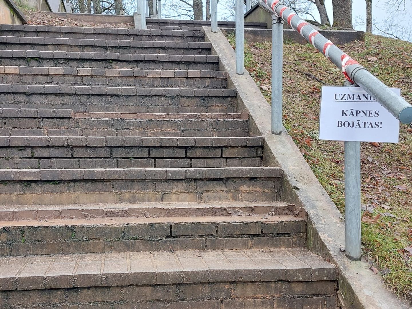 Vienai no Aknīstes parka kāpņu pakāpienu rindām ir kustīgi bruģa fragmenti, tāpēc nolemts tos noņemt un veikt nepieciešamos remontdarbus.