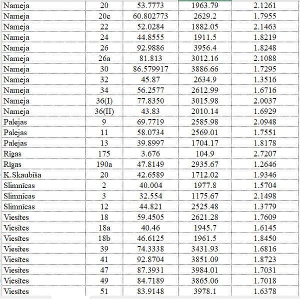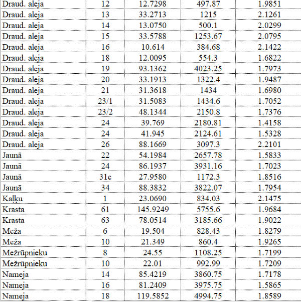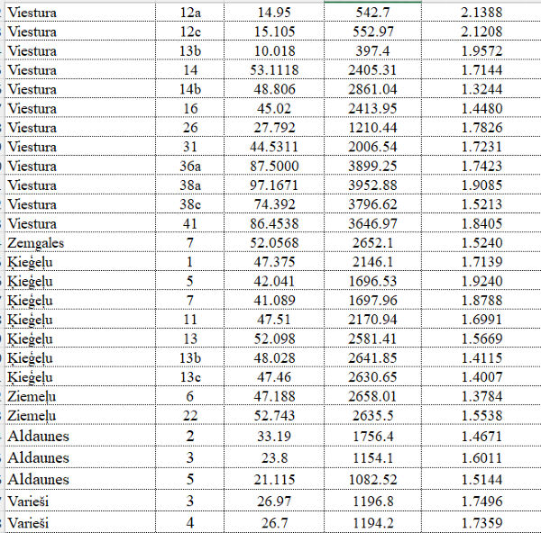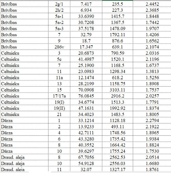- Rīgas iela 175 – 2,72 € bez PVN par kvadrātmetru;