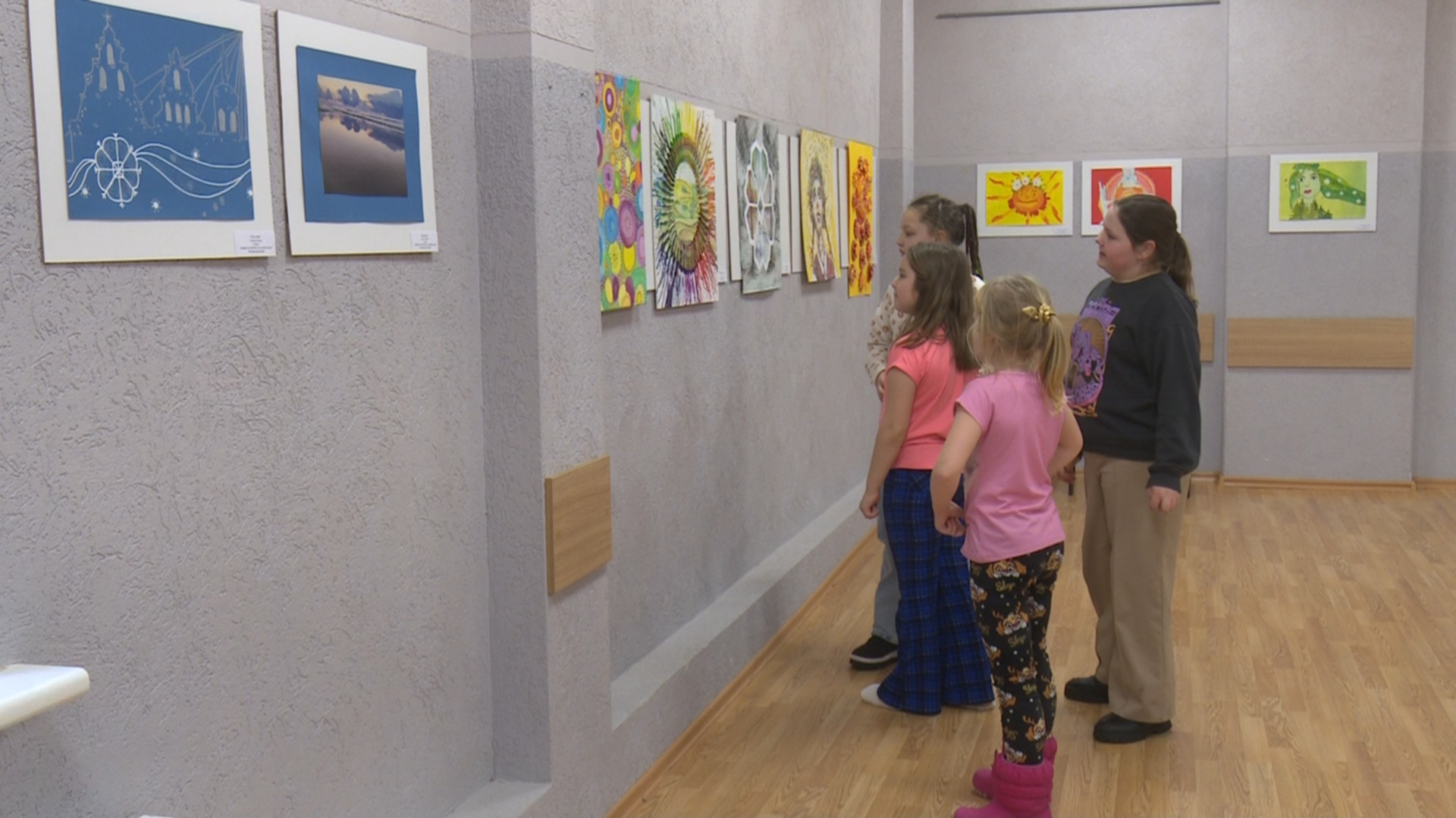 “Šobrīd mēs atrodamies Jēkabpils novada bērnu un jauniešu centra mazajā zālē, kur līdz pat 14.martam mīļi gaidīti apskatīt Valsts izglītības satura centra rīkotu vizuālās un vizuāli plastiskās mākslas darbu izstādi, kuru darbu autori ir Jēkabpils novada izglītības iestāžu audzēkņi. Tieši tie, kuri pārstāv interešu izglītības pulciņus. Izstādes nosaukums ir “Saules ritmi”.”
