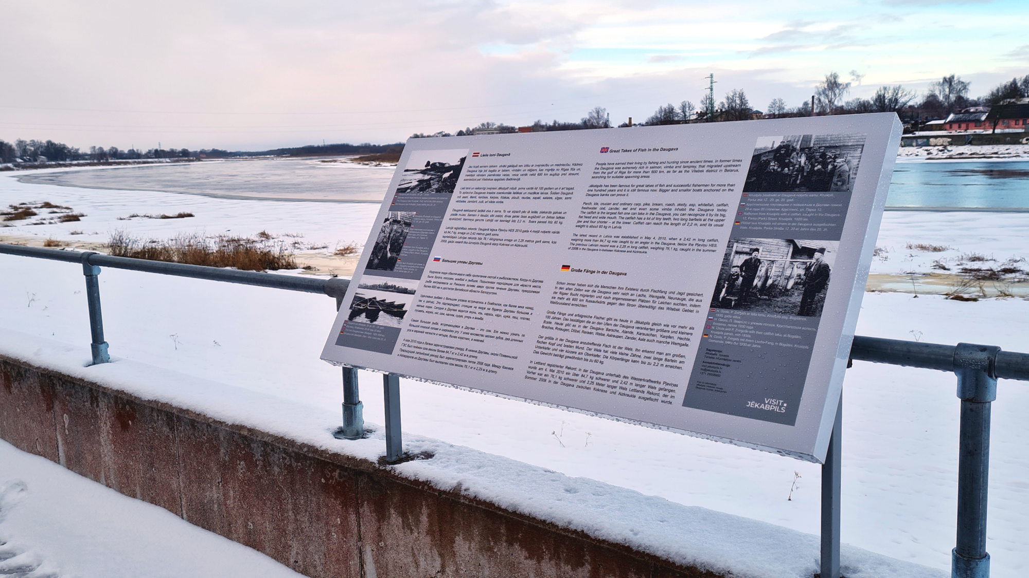 Jēkabpilī šā gada nogalē ir veikta 13 informatīvo stendu atjaunošana uz Daugavas aizsargdambja. Stendi tika uzstādīti 2012. un 2013.gadā un 10 gadu laikā bija vizuāli nolietojušies un bojāti. Tagad tiem nomainītas metāla virsmas un uz tām esošā informatīvā apdruka. Stendi sniedz informāciju par Daugavas ūdensceļa kultūrvēsturisko mantojumu un Daugavas nozīmi Jēkabpils un Krustpils vēsturē. Tajos var lasīt par to, kā Daugavas krastos dzīvojuši zvejnieki, kādi bijuši lielākie lomi, kā izskatījusies un darbojusies Daugavas pārceltuve, kāda ir tilta pār Daugavu un aizsargdambja tapšanas vēsture, kā arī par plūdiem un citām tēmām. Informāciju papildina vēsturiskas fotogrāfijas no muzeju un kolekcionāru krājumiem. Informācija lasāma latviešu, krievu, angļu un vācu valodā.