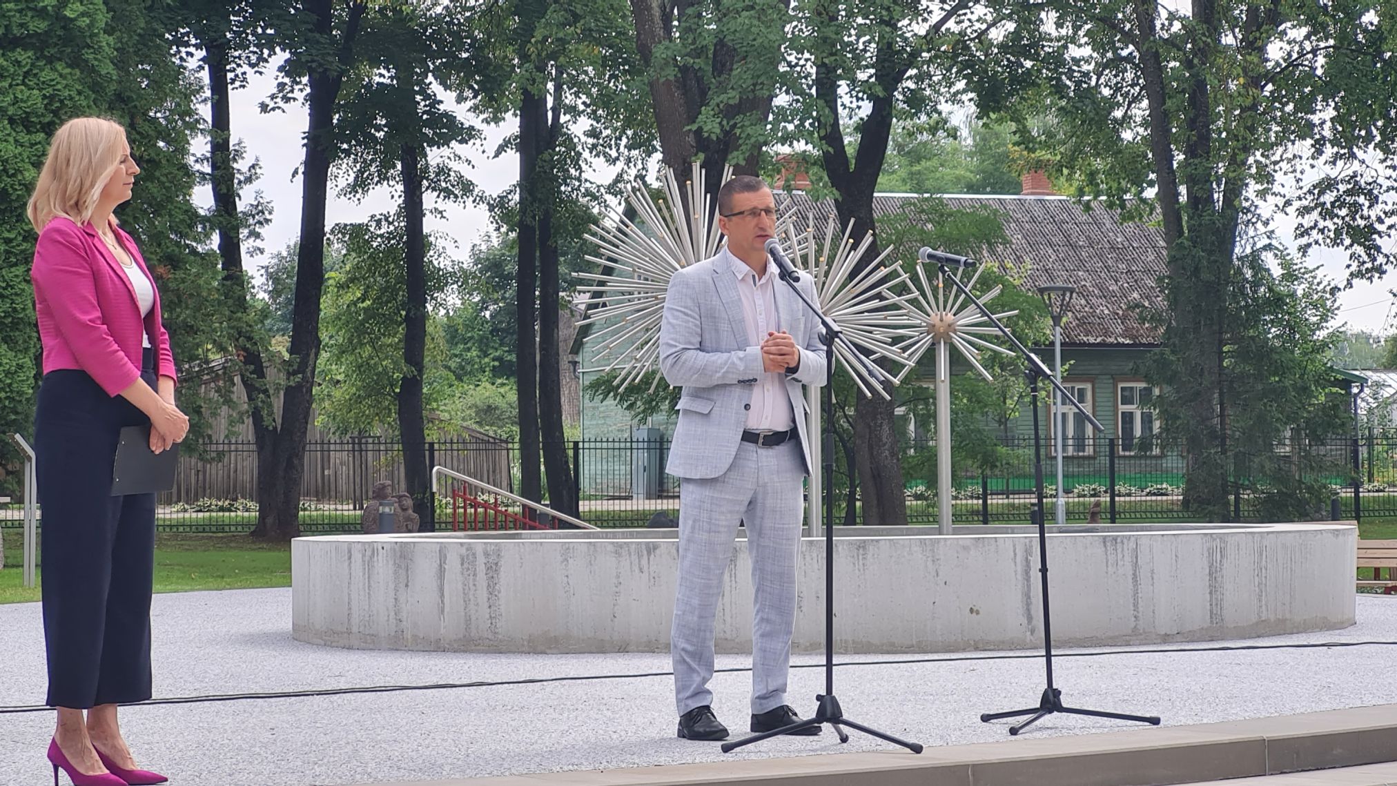 Uzrunājot klātesošos, Jēkabpils novada domes priekšsēdētājs Raivis Ragainis teica: “Gāja mums dažādi. Godīgi sakot, negribas pat atcerēties, kā mums gāja un cik tas bija ilgi, ar kādām rūpēm un problēmām, bet ar to visu tikām galā, tāpēc ir vēl jo lielāks prieks un gods pateikt paldies visiem tiem, kas šajā procesā piedalījās.”
