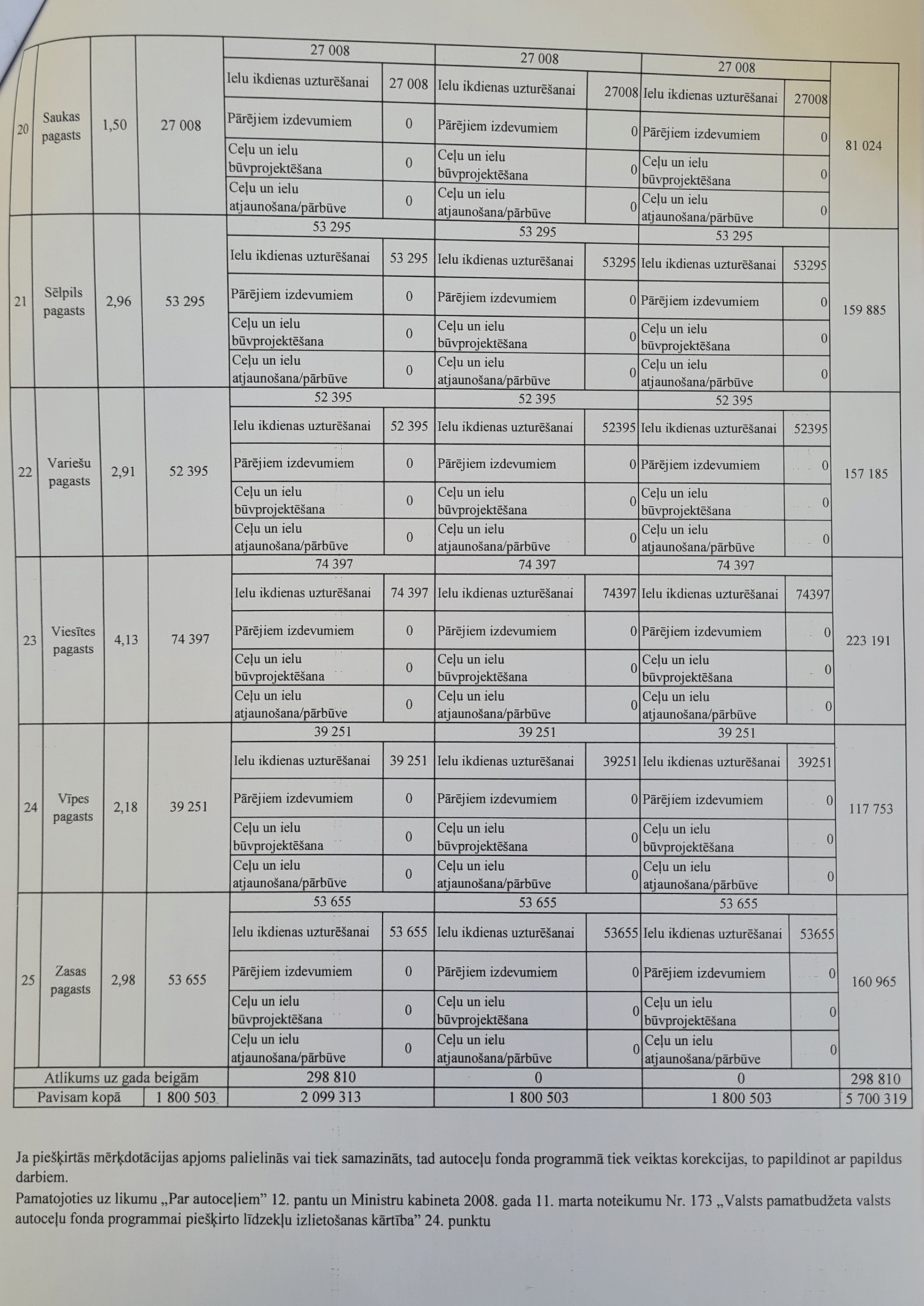 Šogad izdevās ietaupīt līdzekļus, pateicoties tam, ka ziemā nebija daudz sniega. Ietaupīto finansējumu pašvaldība ieguldīja apauguma noņemšanā un grāvju tīrīšanā.