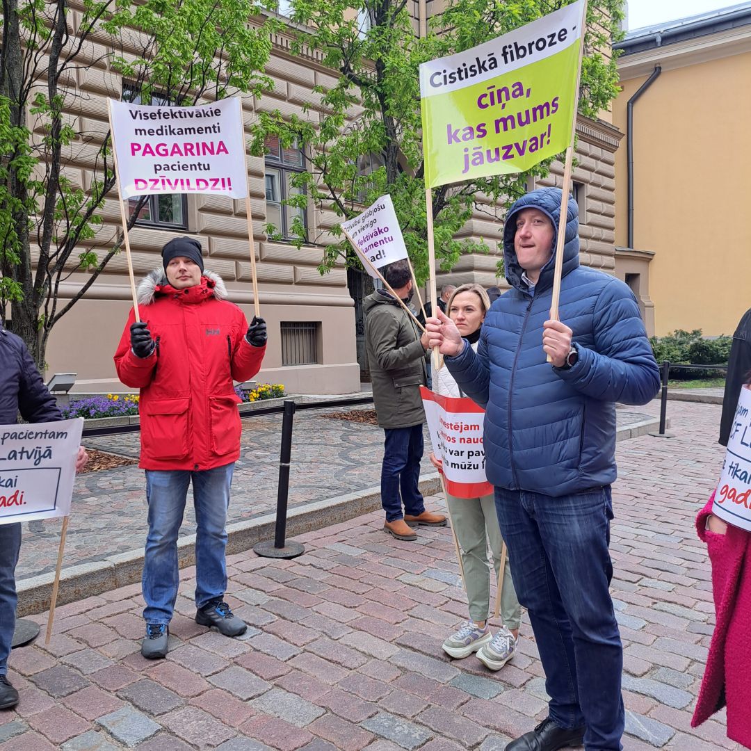 Eiropas dienā cistiskās fibrozes pacientu vecāki pulcējās Rīgā pie Saeimas, lai pieprasītu normatīvo aktu ievērošanu un vienlīdzīgu attieksmi pret visiem cistiskās fibrozes pacientiem. Ministru kabinets 30. aprīlī apstiprināja Veselības ministrijas informatīvo ziņojumu, kas nepiešķir finansējumu jaunākās paaudzes zālēm 16 cistiskās fibrozes pacientiem, kaut arī šīs zāles ir iekļautas kompensējamo zāļu sistēmā un pacienti atbilst visiem nosacījumiem.