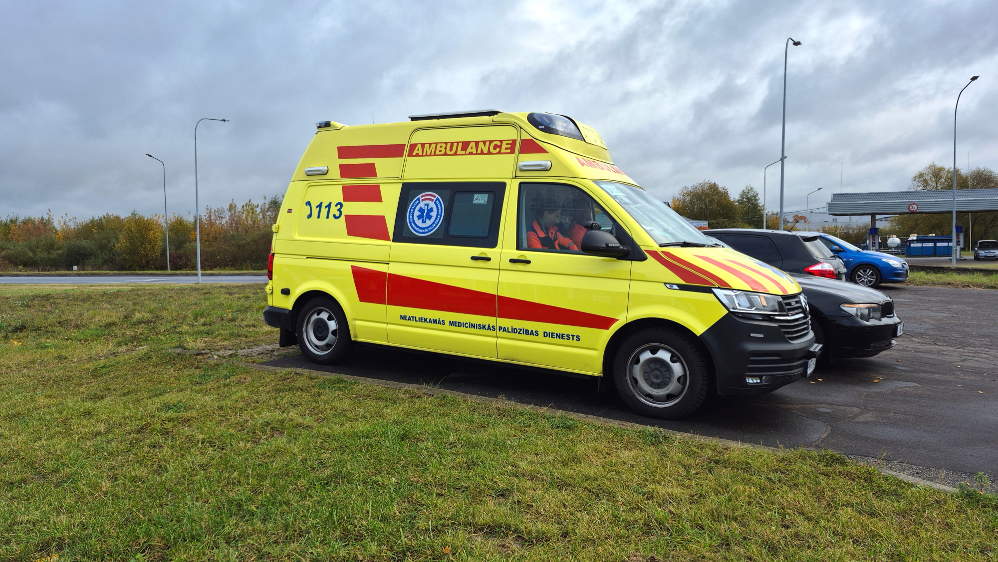 Gaidīšanas punkts izvēlēts vietā, kur blakus atrodas degvielas uzpildes stacija, lai nodrošinātu mediķu pamatvajadzības.