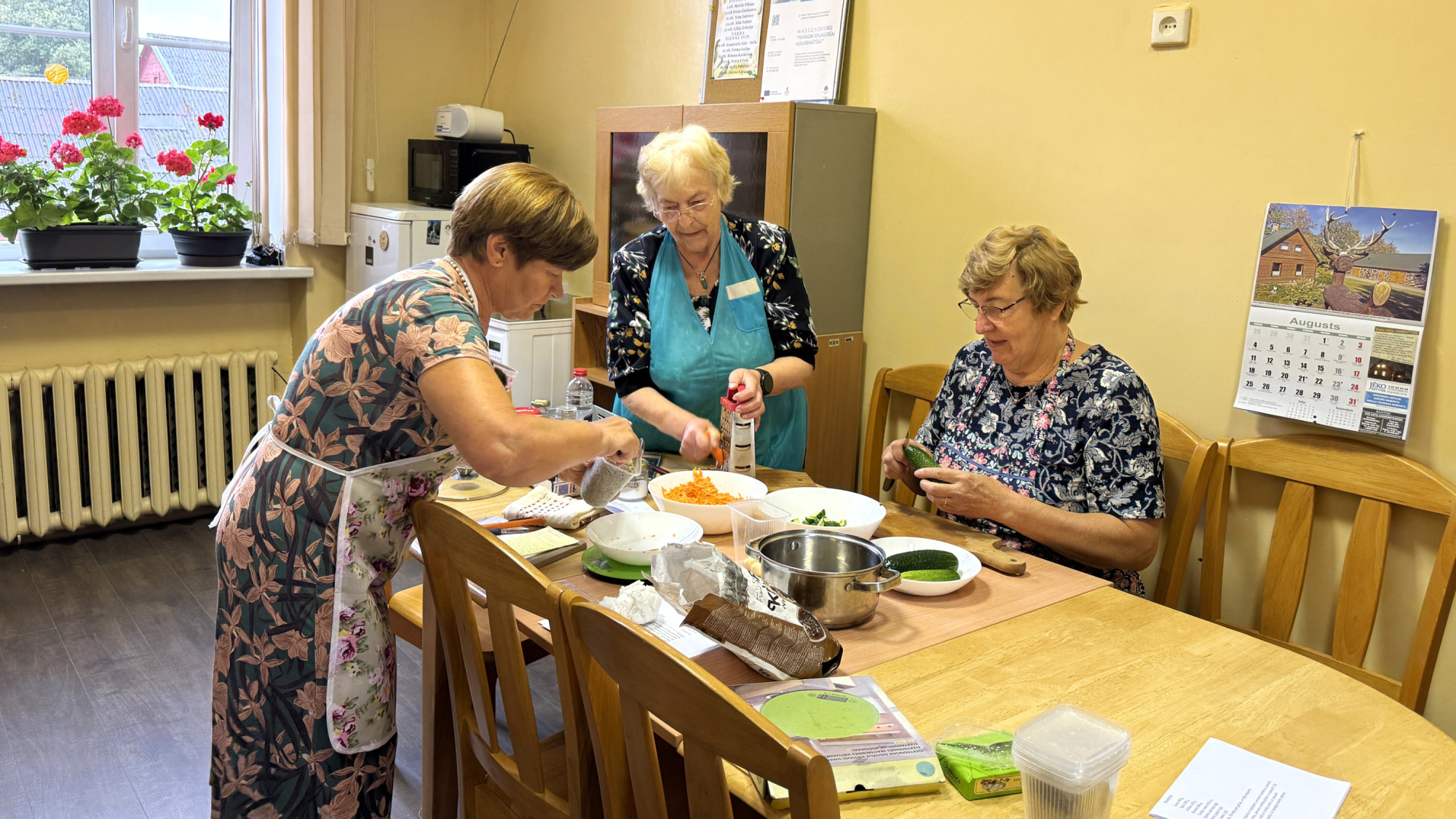 Dienas centrā “Kopā būt” kopā sanāk un ar receptēm dalās bieži. Šoreiz saimnieces rosās pie ziemas krājumu gatavošanas. Virtuvē virmo biešu kaviāra aromāts un rasoļņika sātīgā smarža, kas gatavots pēc saimnieces Ņinas receptes. Vien trūkst tomātu – laikapstākļi šovasar nelutināja, un raža izdevās pavisam pieticīga.