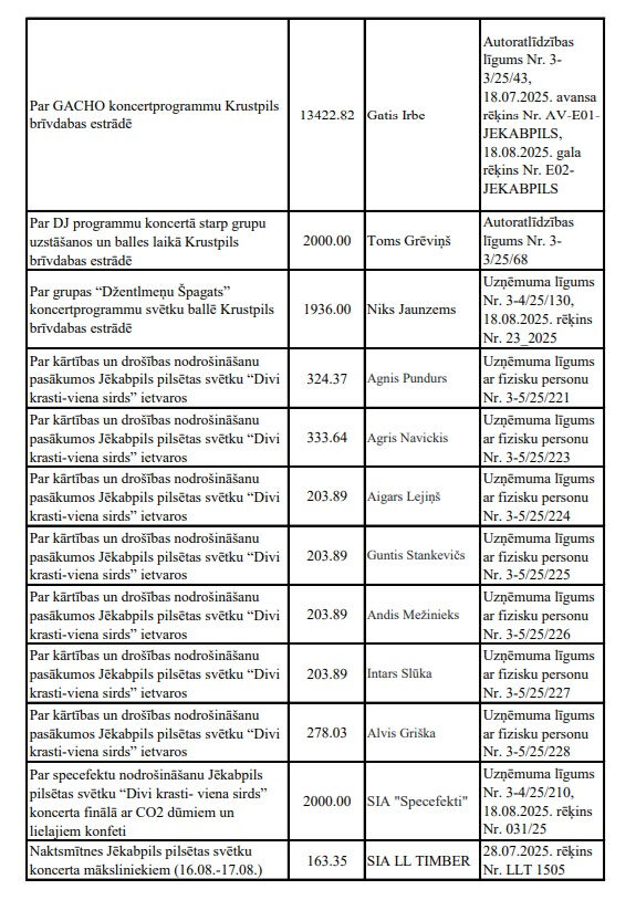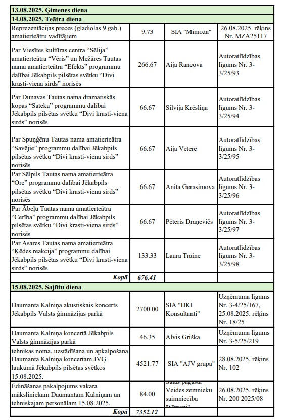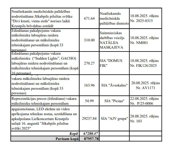 Savukārt “Sajūtu dienas” koncerts pie Jēkabpils Valsts ģimnāzijas kopumā izmaksājis vairāk nekā 7000 eiro.