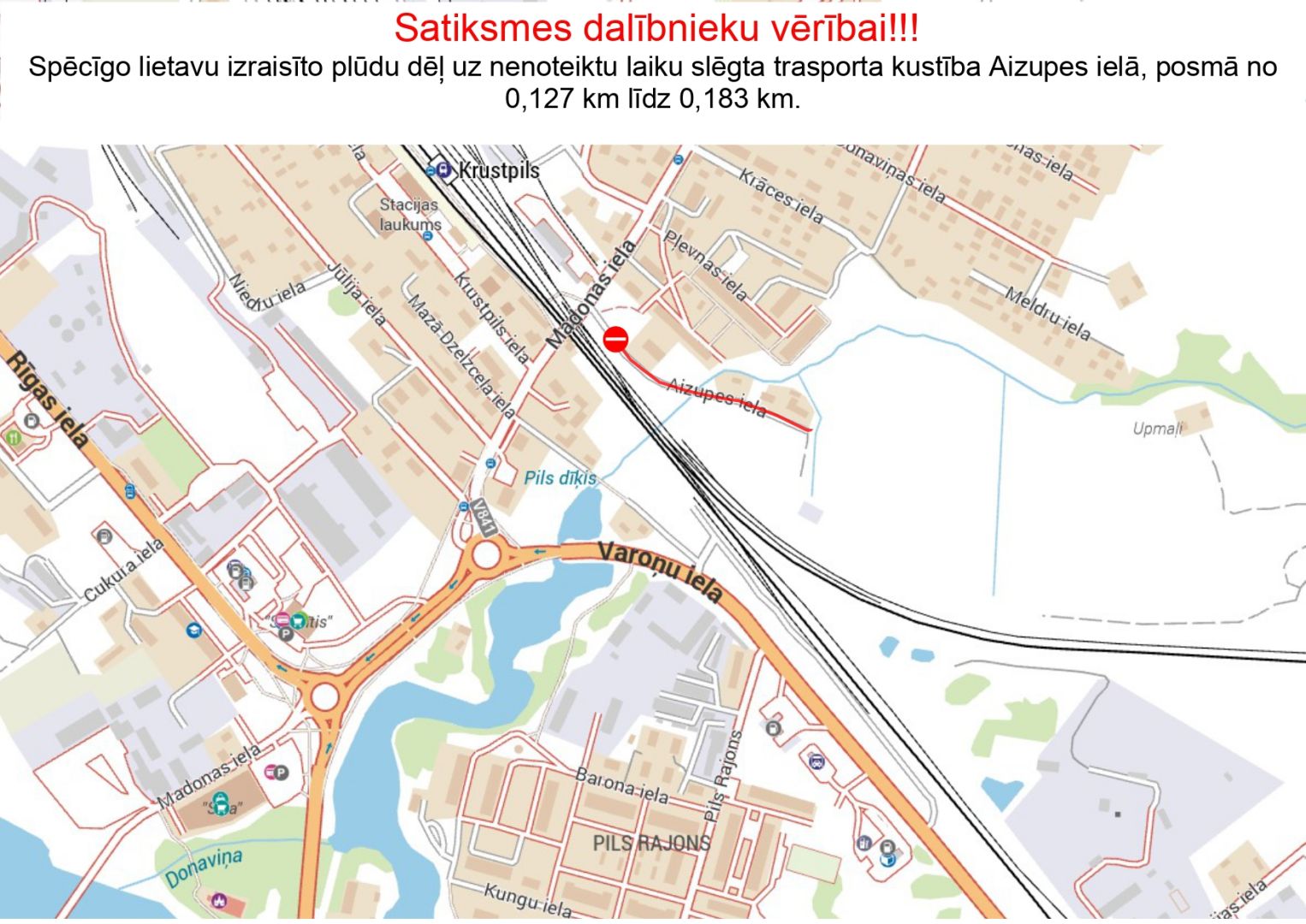 Applūdis ir Aizupes ielas posms, kas šobrīd ir slēgts satiksmei.