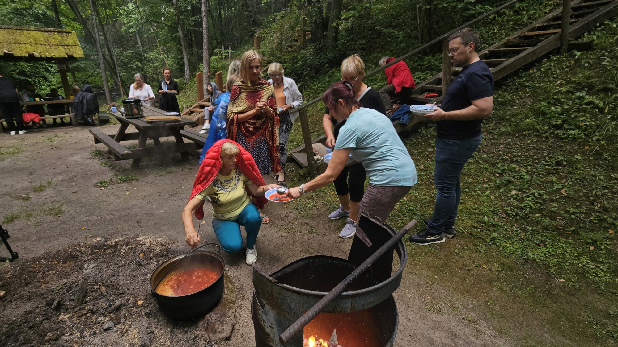 Zupu palīdzēja pagatavot Edgars Līcis, kurš ir ieguldījis lielu darbu palīdzības sniegšanā Ukrainai. Viņš dalījās ar saviem piedzīvojumiem, atklājot, kā viņam veicās pagājušajā mēnesī, dodoties uz kara skarto valsti, ar autobusu, kas bija piepildīts ar ziedojumiem. Tāpat paši seniori dalījās ar stāstiem, atceroties dažādus amizantus notikumus no savas dzīves. Gārsenes takas tika piepildītas ar smiekliem un skaistām atmiņām.