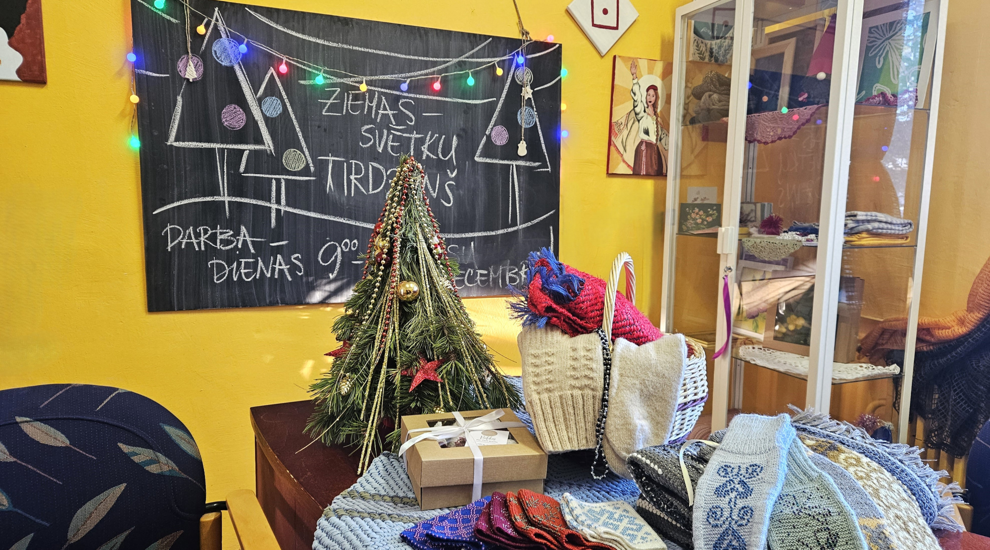 Dienas centra “Kopā būt” aktīvie un rosīgie seniori visu gadu cītīgi strādājuši, lai svētku laikā iepriecinātu citus. Centra telpās šobrīd darbojas Ziemassvētku dāvanu tirdziņš, kurā ikviens var iegādāties senioru radītos rokdarbus – dažādus adījumus, gleznas un pat klūgu grozus. To pinēja šo arodu apguva pirms 45 gadiem kursos, kas norisinājās Krustpils Kultūras namā.
