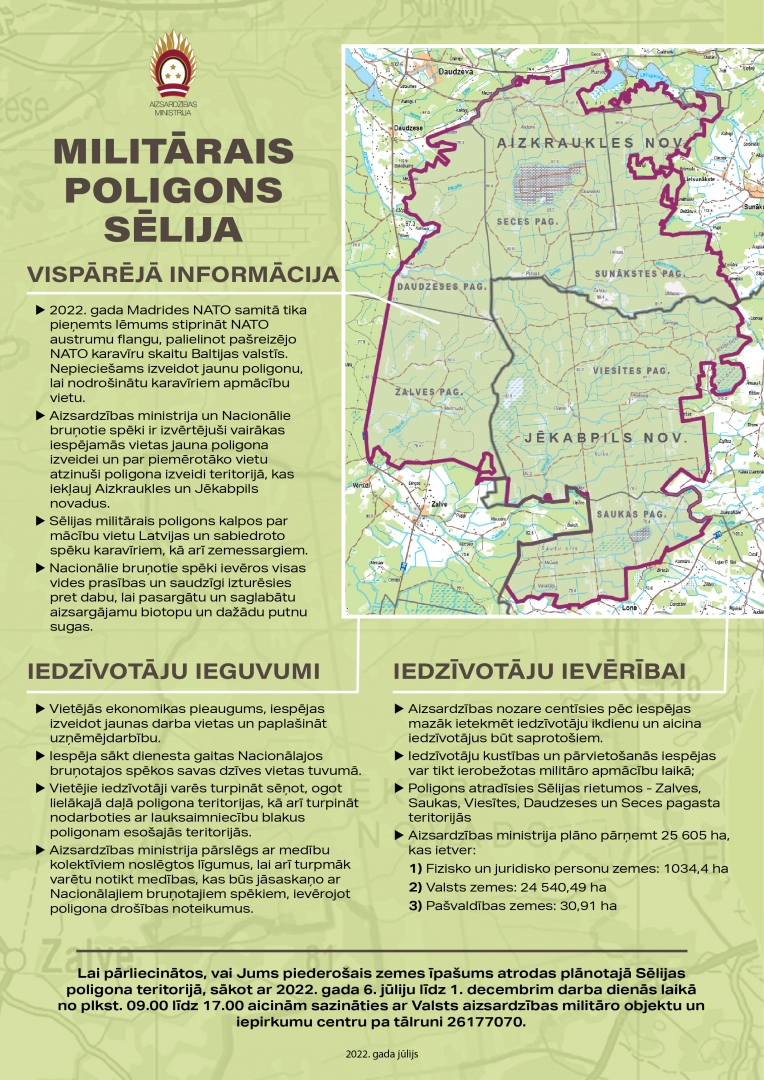 Informācija Aizkraukles un Jēkabpils novada iedzīvotājiem par Sēlijas militāro poligonu 1