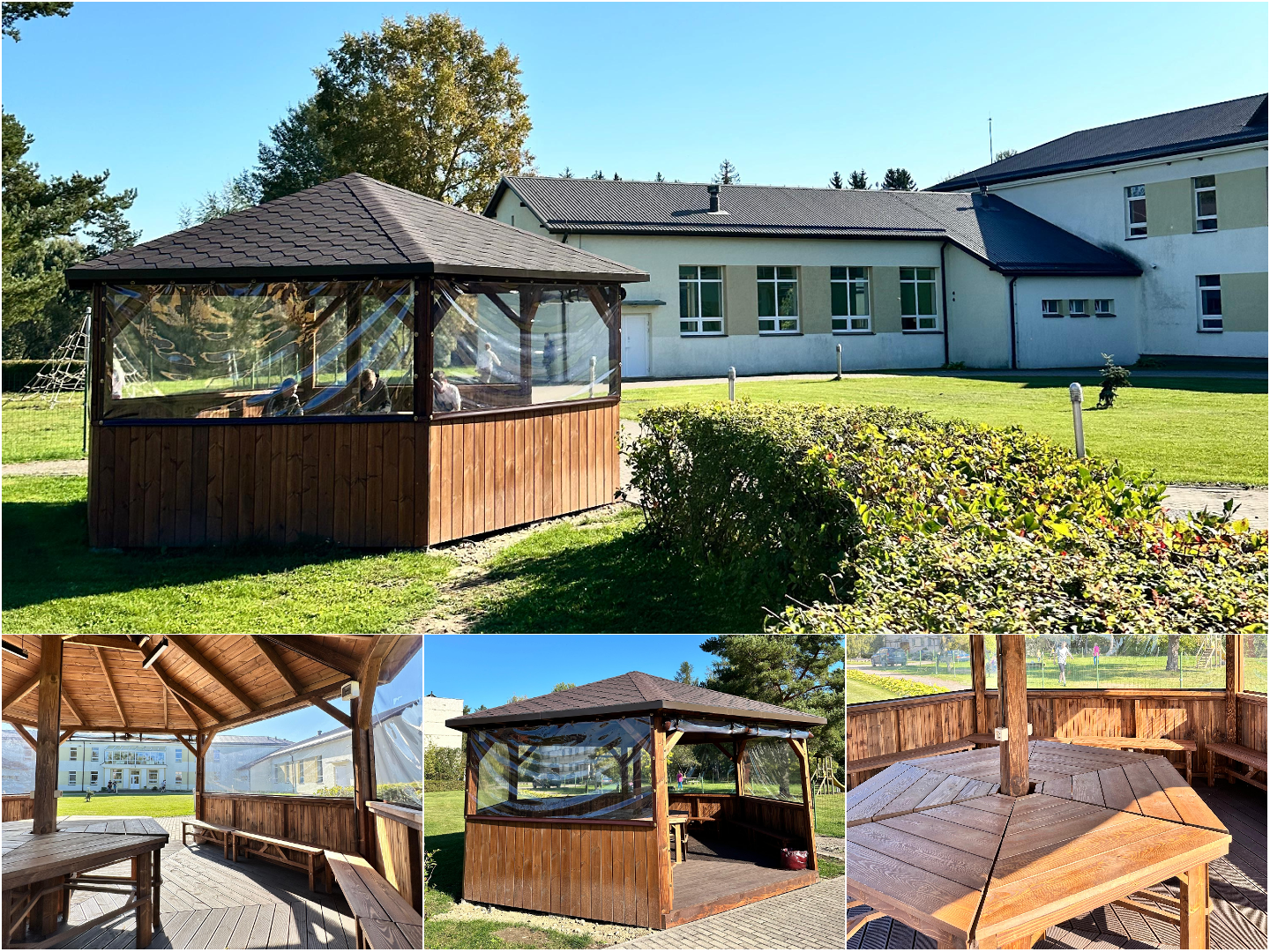Īsi un konkrēti – vieta, kurā socializēties! “Zaļā klase” ārpus ierastās skolas vides, bērnus tuvinot dabas ritumam, akcentējot vietējās kopienas un dabas mijiedarbību. Paredzēta mācību stundām, pagarinātās dienas grupu aktivitāšu realizēšanai, pasākumiem, sanāksmēm. Domājot par vidi, svarīgs elements ir dabas klātbūtne, tādēļ būves dizainā izmantoti pēc iespējas vairāk dabas materiāli– tas ne tikai rada vizuālu dabas klātbūtni, bet arī veicina patīkamu smaržu. Dabīgi krāsu pigmenti, atbilstošs grīdas segums un koka elementi interjerā pozitīvi ietekmē labsajūtu, kā arī veicina koncentrēšanos dažādām aktivitātēm.