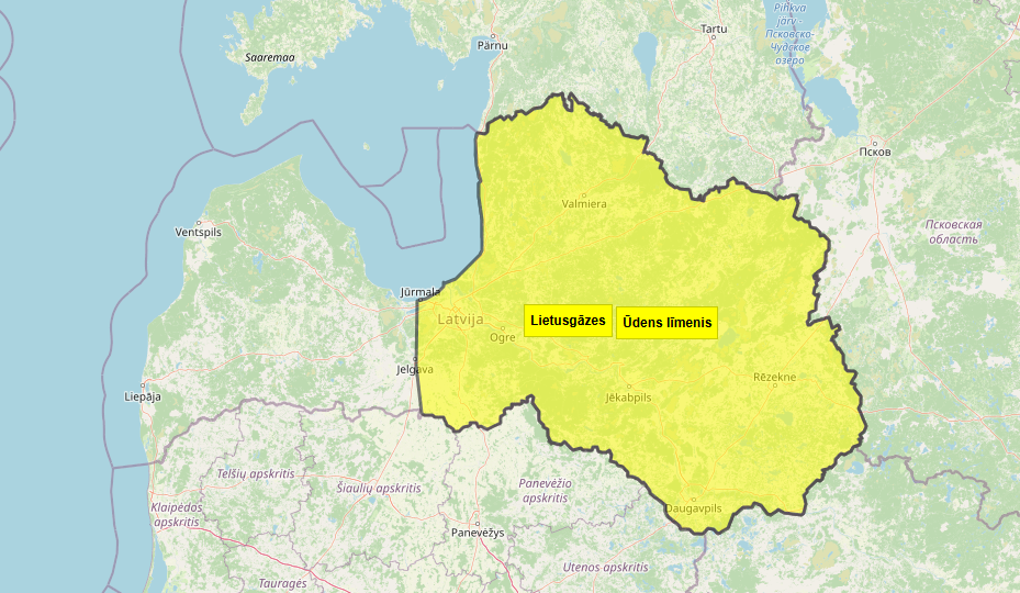 Dzeltenās pakāpes brīdinājums par augstu ūdenslīmeni austrumu rajonos būs spēkā līdz 1. augusta pulksten 15.00.
