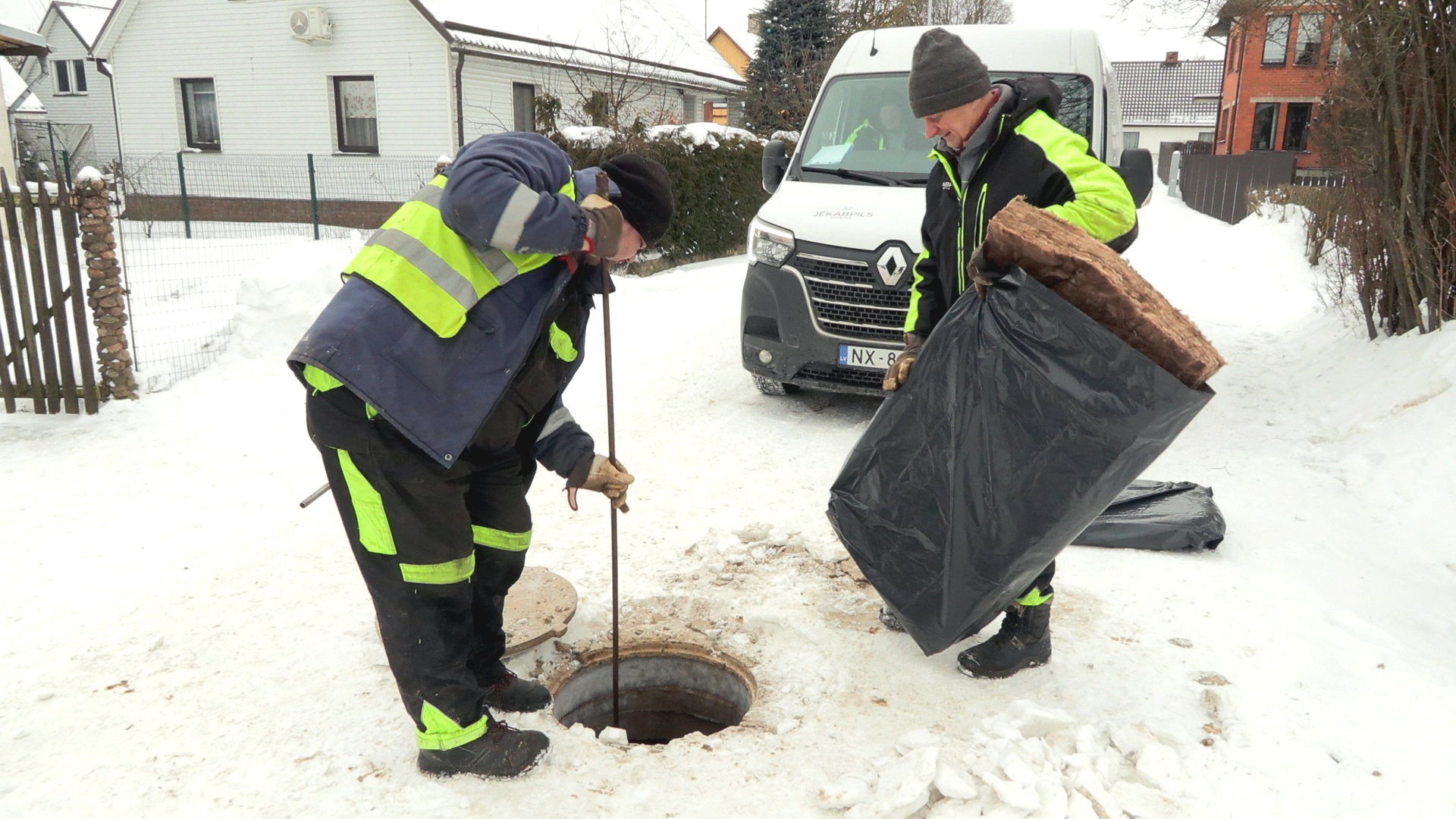 “Daudzi darbinieki ir ar slimības lapām, mums sanāk tikai divas brigādes – viena brigāde silda ūdensvadus, otra – kanalizācijas caurules,” stāsta Lilija Berģe, piebilstot, ka svarīgi, lai būtu kontakts ar iedzīvotāju. “Galvenais, lai iedzīvotājs, pie kura mēs braucam, būtu mājās, tāpēc ka cilvēki, strādājot ārā – akā, nezina, vai tam iedzīvotājam parādījās ūdens vai nē.”