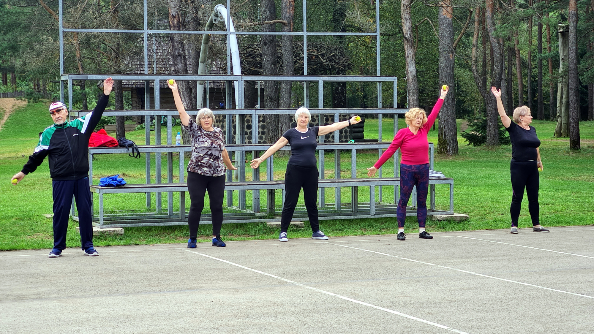 “Cilvēks jau ir piedzimis, lai viņš kustētos, nevis mierīgi gulētu uz dīvāna,” stāsta nodarbību dalībniece Zeltīte. “Tāpēc jebkura kustība arī seniora vecumā – tā tiešām uzlabo veselību. Un te ir arī kopā sanākšanas brīdis. Te ir prieki, te ir smiekli, te ir... asaras te nav bijušas. Te neviens nevienam neko neaizrāda. Visi dara tik, cik viņi var izdarīt.”
