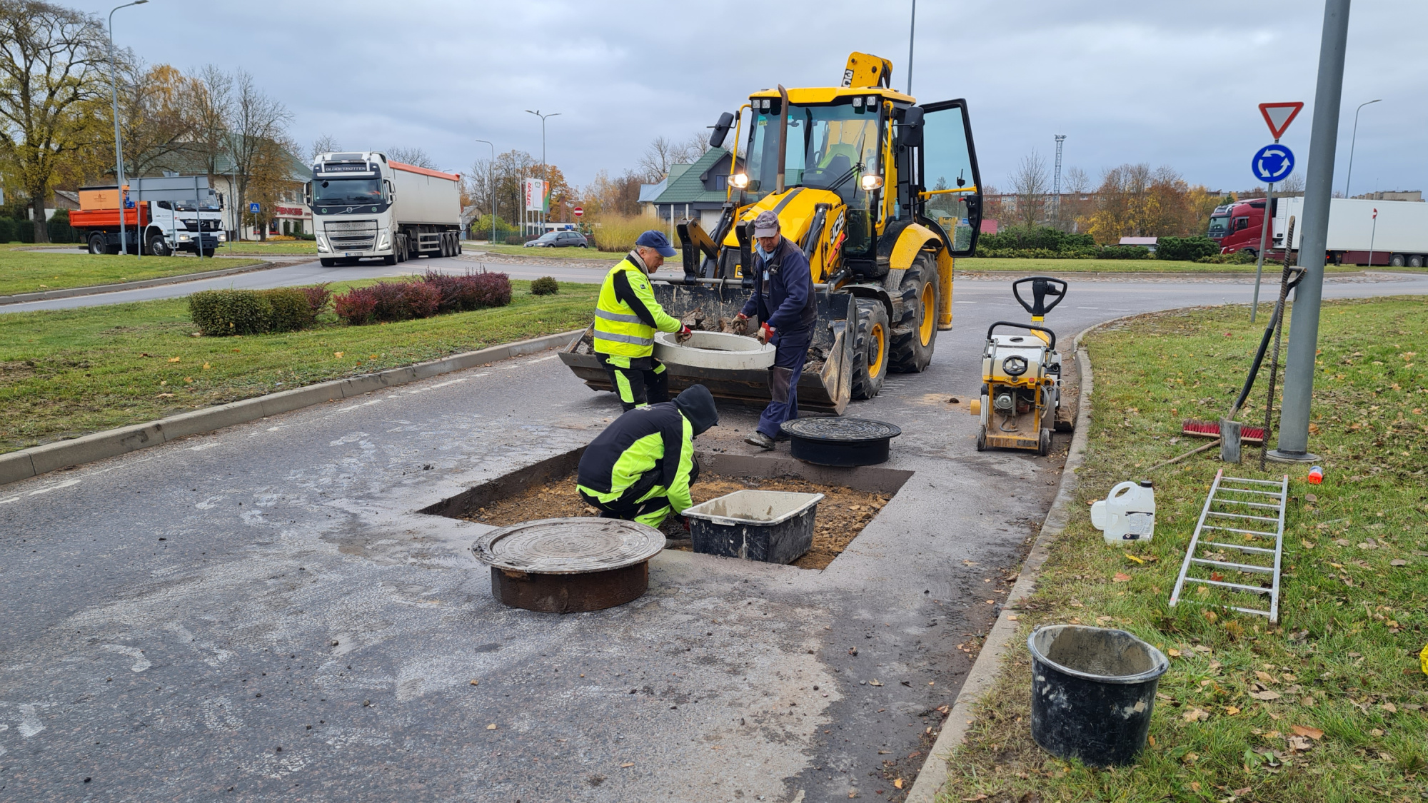 “Regulējošie gredzeni bija bojāti, kurus mēs arī nomainījām. Nomainījām arī lietus kanalizācijas skatakas vāku,” skaidro SIA “Jēkabpils ūdens” valdes loceklis Artūrs Smagars. “Tas noteikti ir vairāk saistīts ar intensīvo satiksmi. Satiksmes rezultātā gredzeni sabruka, bet pašai akai pārsedze bija laba, tur nekas tāds. Tik, cik viņa sašķiebās – tas akas vāks.”
