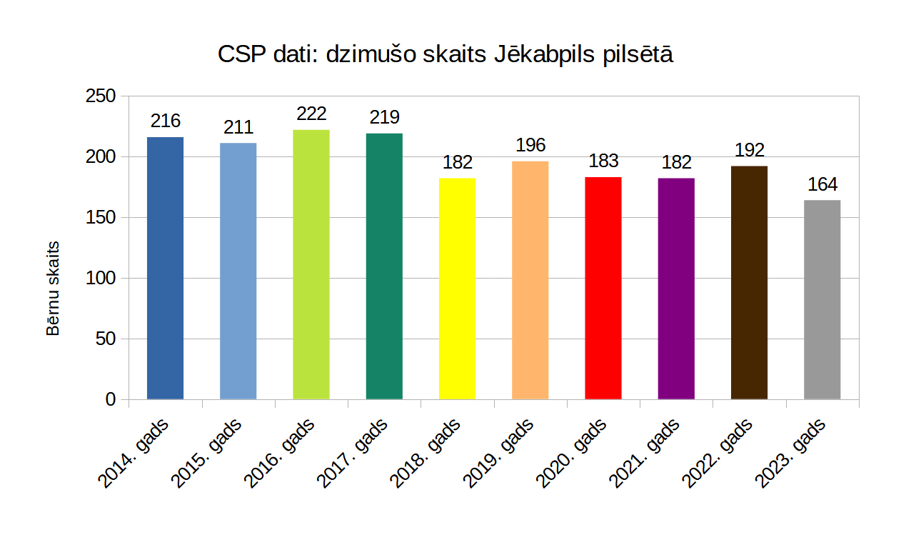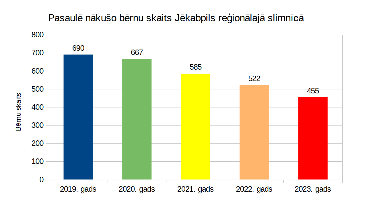 Samazinās ne tikai pasaulē nākušo mazuļu skaits Jēkabpils reģionālajā slimnīcā, bet arī reģistrēto jaundzimušo skaits Jēkabpils pilsētā. Centrālās statistikas pārvaldes dati par iepriekšējiem 10 gadiem liecina, ka Jēkabpils pilsētā pēdējos sešos gados reģistrēto mazuļu skaits 12 mēnešu periodā nav sasniedzis 200. Pēdējo reizi jaundzimušo skaits pārsniedza 200 2017. gadā, kad Jēkabpilī tika reģistrēti 219 jaundzimušie. Kopš 1996. gada visražīgākais gads šajā ziņā Jēkabpilī bijis 2006. gads, kad reģistrēti 296 mazuļi.