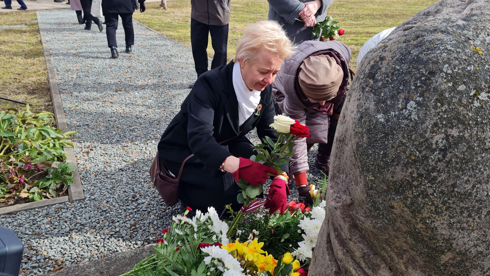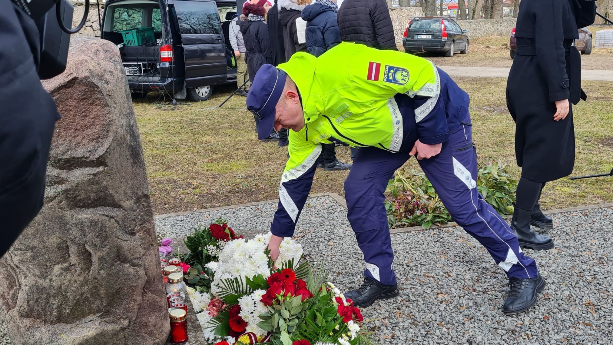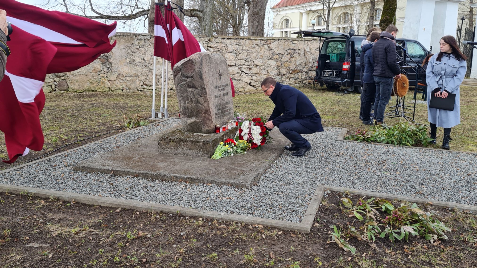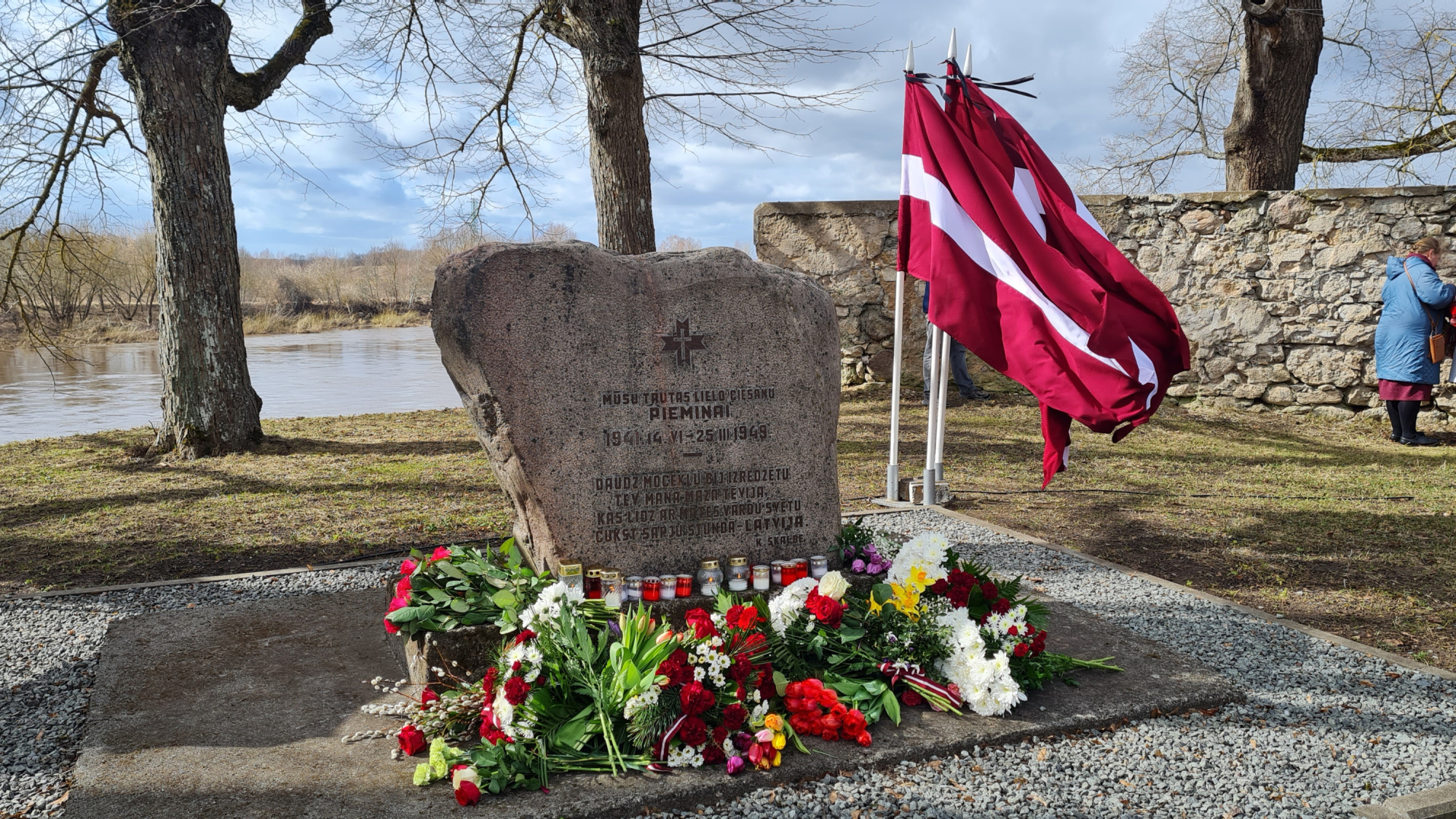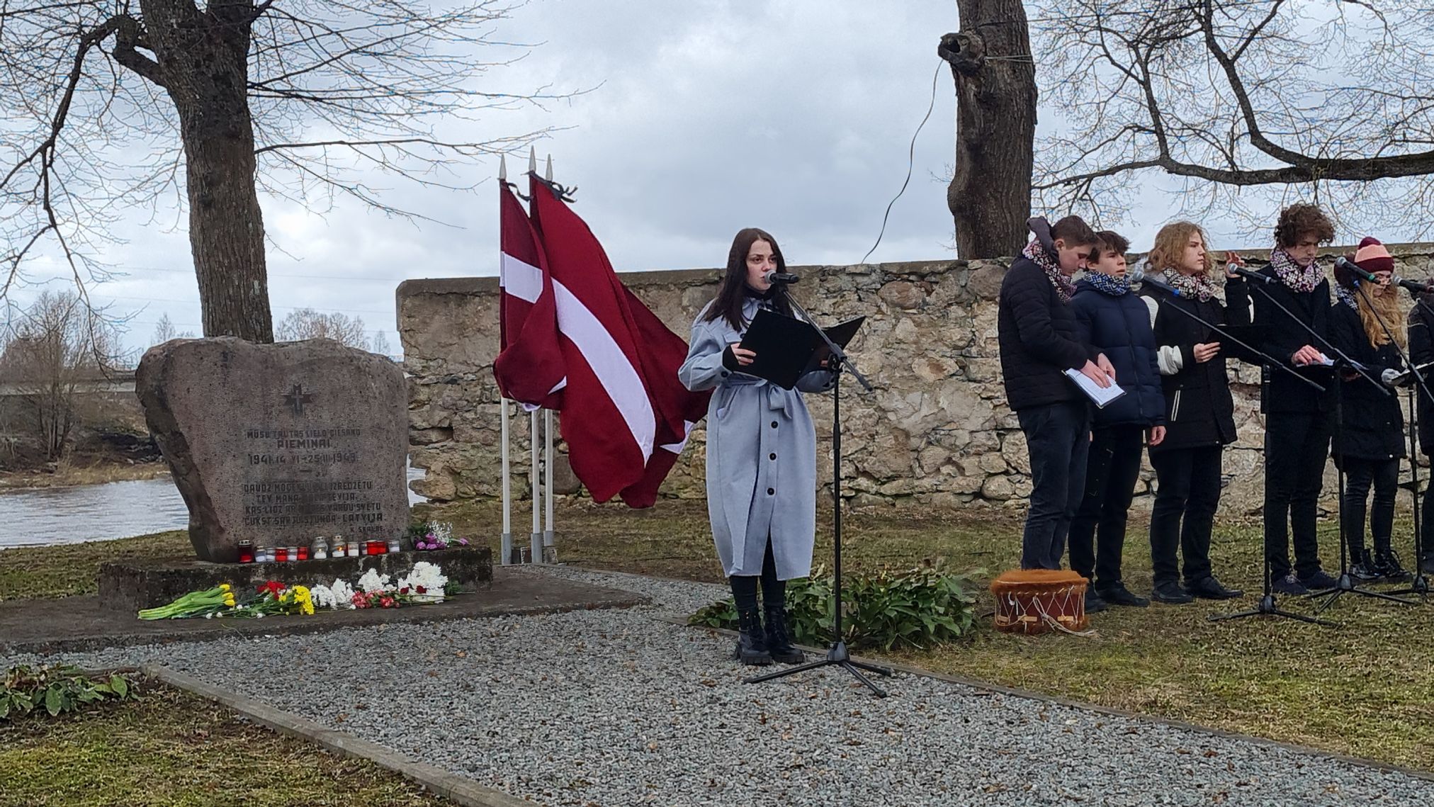 Pēc svinīgajām uzrunām klātesošie tika aicināti nolikt ziedus un svecītes pie pieminekļa represiju upuriem.