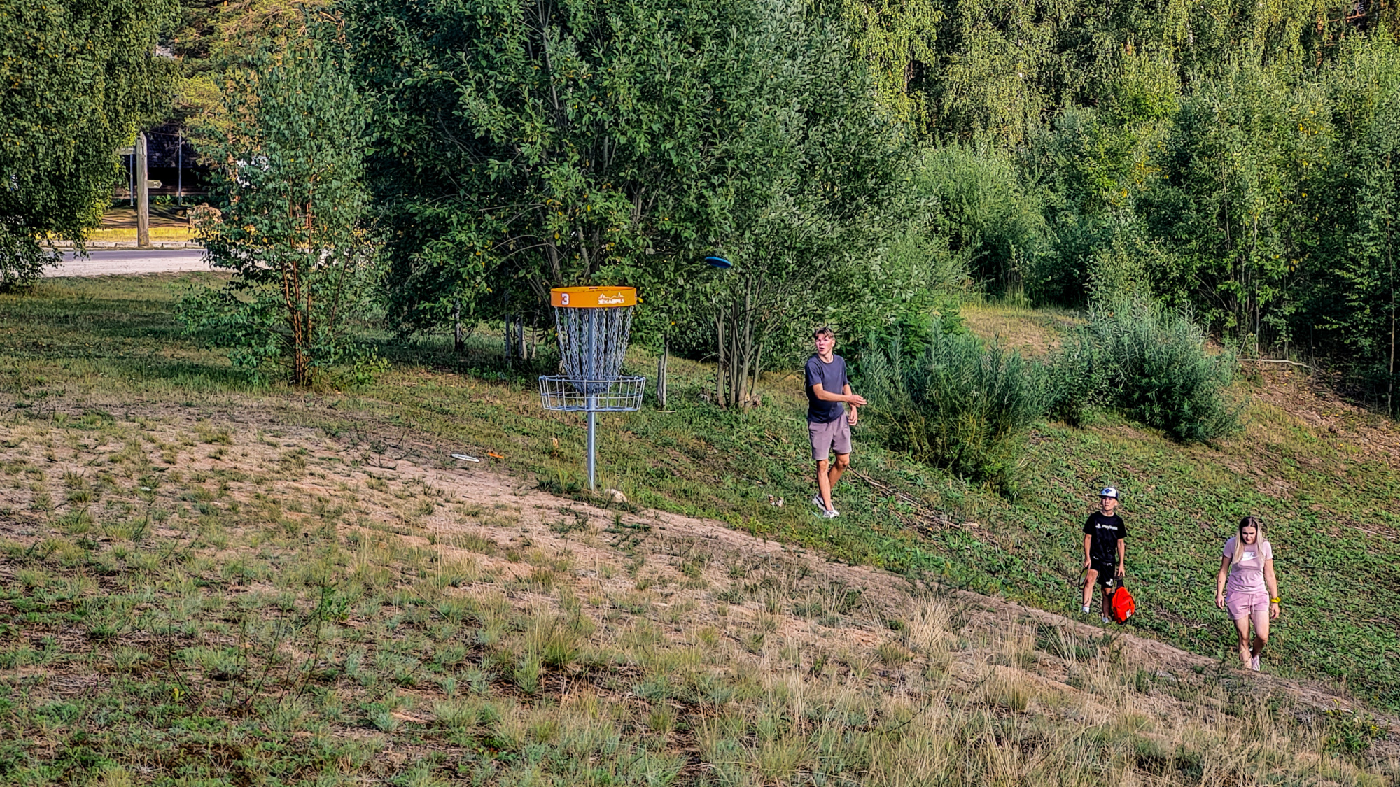 Jēkabpils Mežaparkā norisinājušās disku golfa sacensības. Tas bija turnīra “Lūša ķepa” pirmais posms, un tajā par uzvaru cīnījās 44 dalībnieki – deviņas dāmas un 35 kungi. Disku golfs notiek teritorijā, kur izvietoti vairāki celiņi un grozi. Jēkabpils Mežaparkā ir deviņi celiņi un grozi. Spēlētājam no starta laukuma jāmēģina trāpīt grozā lidojošo disku. Ja ar pirmo reizi neizdodas, tad nākamais metiens jāveic no vietas, kur piezemējās spēlētāja disks. Šādā veidā jāiziet visi celiņi, cenšoties disku grozā iemest ar mazāku metienu skaitu. Tā kā spēle notiek ārā, svarīga ir ne tikai metiena tehnika un pareiza trajektorijas izvēle, bet arī laika apstākļu un laukumā esošo šķēršļu izvērtēšana, jo diska lidojumu ietekmē vējš, koki un citi infrastruktūras objekti. Sacensībās Jēkabpilī piedalījās gan jau pieredzējuši spēlētāji, gan iesācēji.