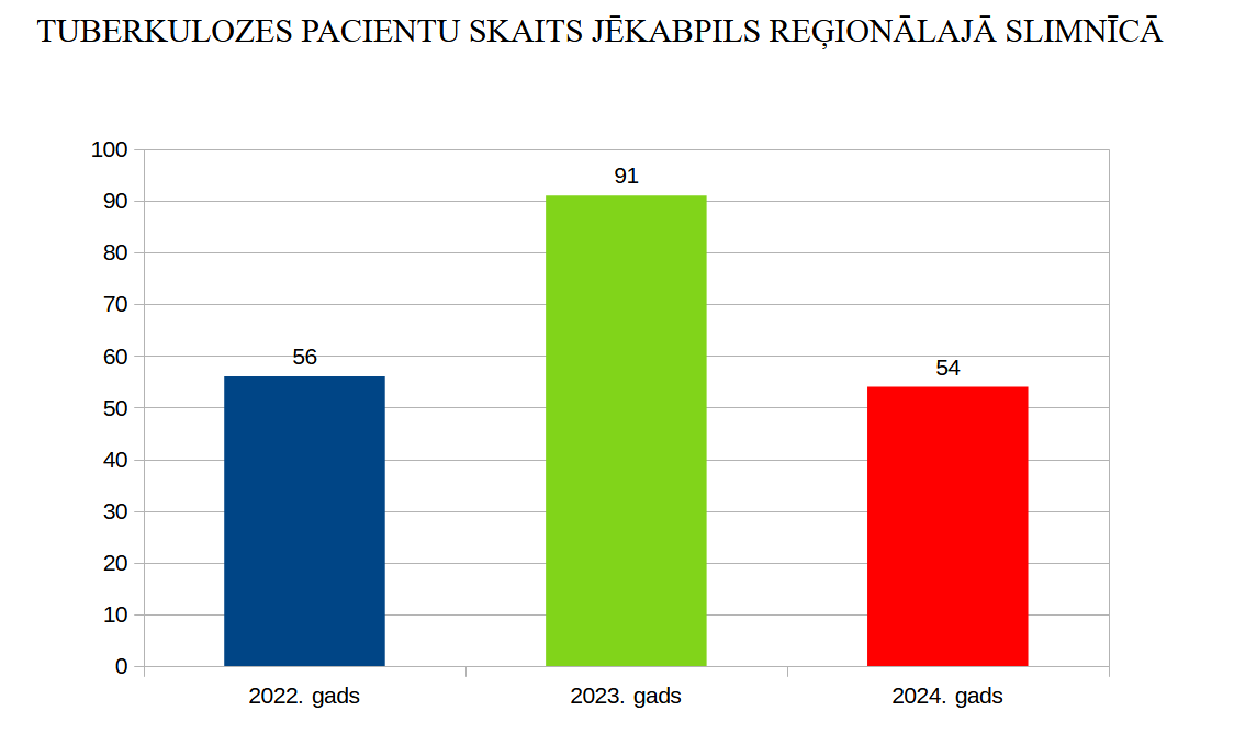 Jēkabpils reģionālajā slimnīcā tuberkulozes pacientu skaits pēdējos gados svārstījās, bet pērn tika reģistrēti 54 pacienti.