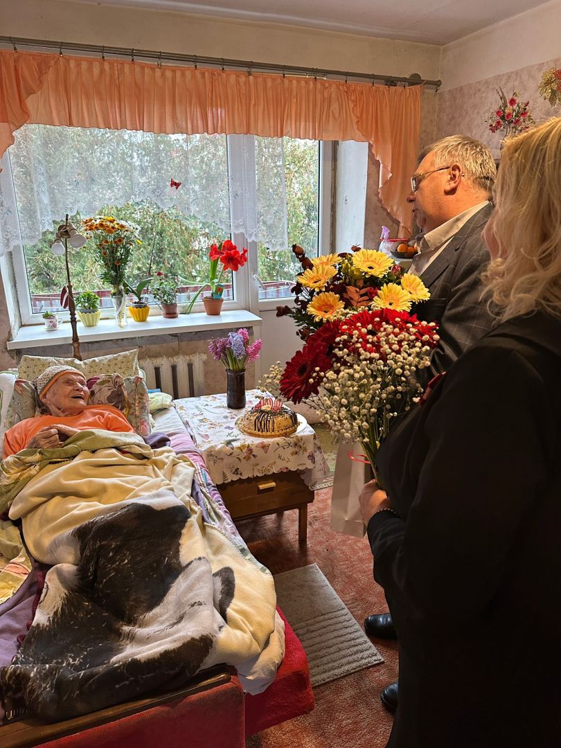 Jēkabpils novada domes priekšsēdētāja vietnieks veselības un sociālo pakalpojumu jautājumos Aivars Vanags un Jēkabpils novada sociālā dienesta darbiniece Elita Dimante devās apciemot jēkabpilieti Ludvigu Valaini viņas īpašajā un nozīmīgajā dzīves dienā – 100 gadu jubilejā.