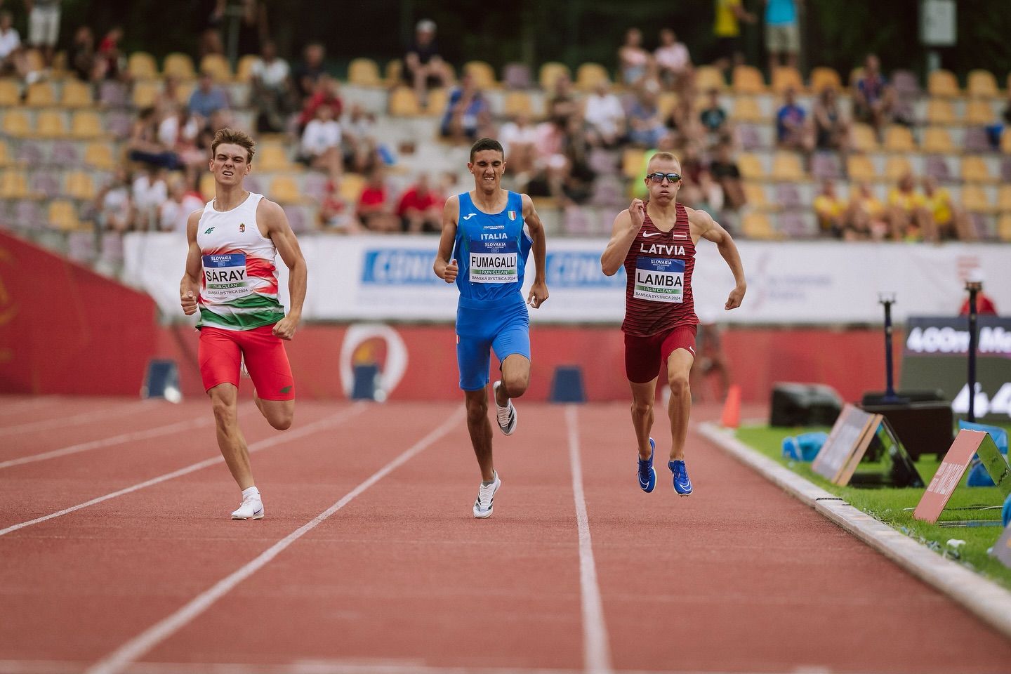 Savukārt nākamās dienas rīta programmas visspožākais moments Latvijas vieglatlētiem bija Emīla Lambas skrējiens 400 metru pusfinālā. Lai gan savā skrējienā Emīls finišēja trešais, viņa rezultāts ir jauns Latvijas U18 rekords, jau trešais šovasar – 47,54 sekundes. Ar šādu veikumu un sesto labāko rezultātu Emīls nopelnīja vietu finālskrējienā.