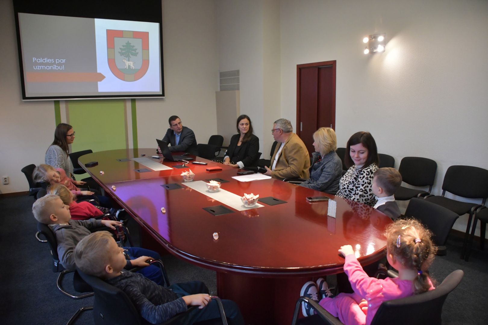 Pedagogus un bērnus novada pašvaldībā uzņēma Jēkabpils novada domes priekšsēdētājs Raivis Ragainis, domes priekšsēdētāja vietnieks izglītības un kultūras jautājumos Alfons Žuks un Jēkabpils novada Izglītības pārvaldes vadītājas vietniece Sarmīte Safronova.