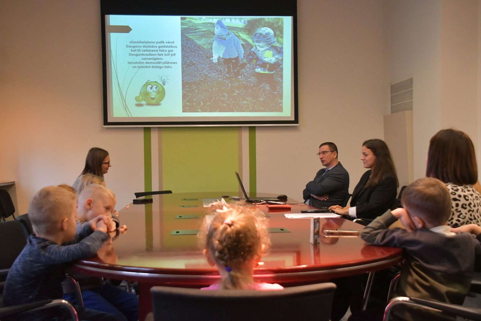 Jēkabpils pirmsskolas izglītības iestāde “Auseklītis” saņēma Ekoskolu Zaļo karogu par ieguldījumu vides izglītībā, tāpēc bērni, Ekopadomes dalībnieki, un pedagogi, Laura Bondare, Solvita Birzāka, Kristīne Akmene, klātienes tikšanās laikā domes vadībai un atbildīgajiem speciālistiem prezentēja Ekoskolas programmas tēmu «Vide un veselīgs dzīvesveids».