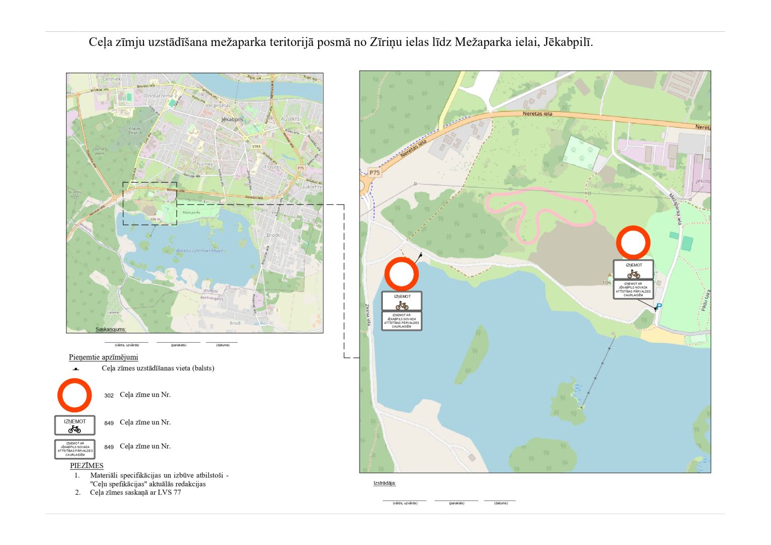 Jēkabpils Mežaparkā ir uzstādītas ceļa zīmes, kas aizliedz pārvietoties ar automašīnām no centrālās pludmales autostāvvietas pa ceļu, kas ved gar Radžu ūdenskrātuvi virzienā uz Zīriņu ielas pusi. Iebraukšana aizliegta no abām pusēm.