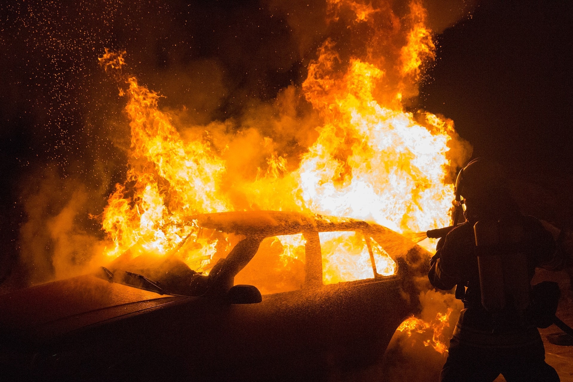 - Ieteikums: aizver visus logus un durvis, sagatavo ugunsdzēsības aparātu, pavēri nelielu durvju spraugu un nekavējoties iztukšo aparāta saturu salonā. Ja iespējams, izmanto vairākus aparātus vienlaikus.
