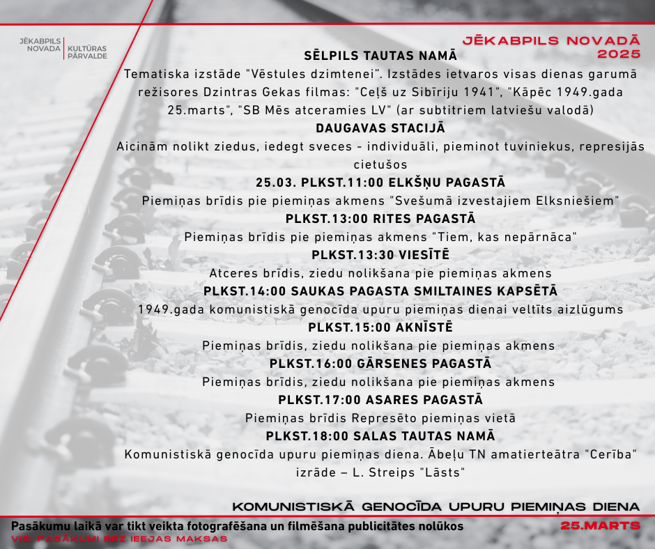 Jēkabpils novadā atzīmēs Komunistiskā genocīda upuru piemiņas dienu (AFIŠAS) 27