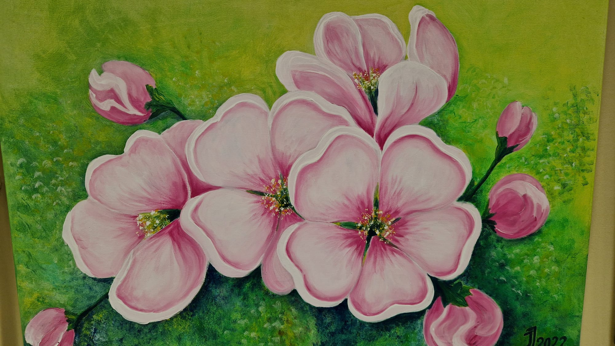 “Es centos vienu dienu nedēļā – tā bija piektdiena, jo tā gadījies, ka tā man ir brīvdiena, – sāku veltīt tieši gleznošanai,” stāsta Ilva Ievāne. “Man to vajadzēja priekš sevis. Pirmkārt, atrast laiku sev, otrkārt, sakārtot sevi un atrast ceļu pie sevis. Sāku tieši gleznot ziedus. Bērnība ļoti daudz laukos pie vecmāmiņas un vectētiņa pagāja, un vecmāmiņai bija ziedi. Es vienmēr sēdēju blakus dobē – gan palīdzēju ravēt, gan viņa daudz stāstīja. Viņa ar rokdarbiem nodarbojās – gan tamborēja, gan auda. Viss skaistums tika likts rokdarbos.”