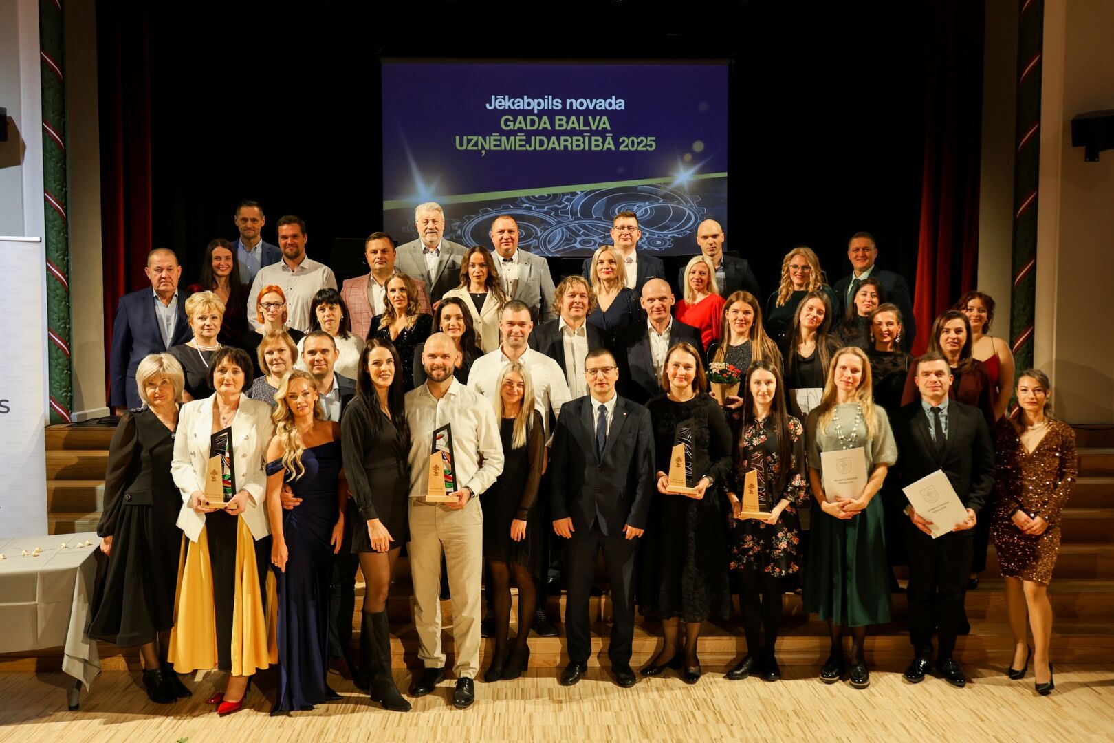 Jēkabpils Tautas namā svinīgā un iedvesmojošā gaisotnē norisinājās konkursa “Jēkabpils novada Gada balva uzņēmējdarbībā 2025” noslēguma pasākums, kura laikā tika godināti novada uzņēmēji par sasniegumiem, attīstību un nozīmīgu ieguldījumu vietējās uzņēmējdarbības vides stiprināšanā.