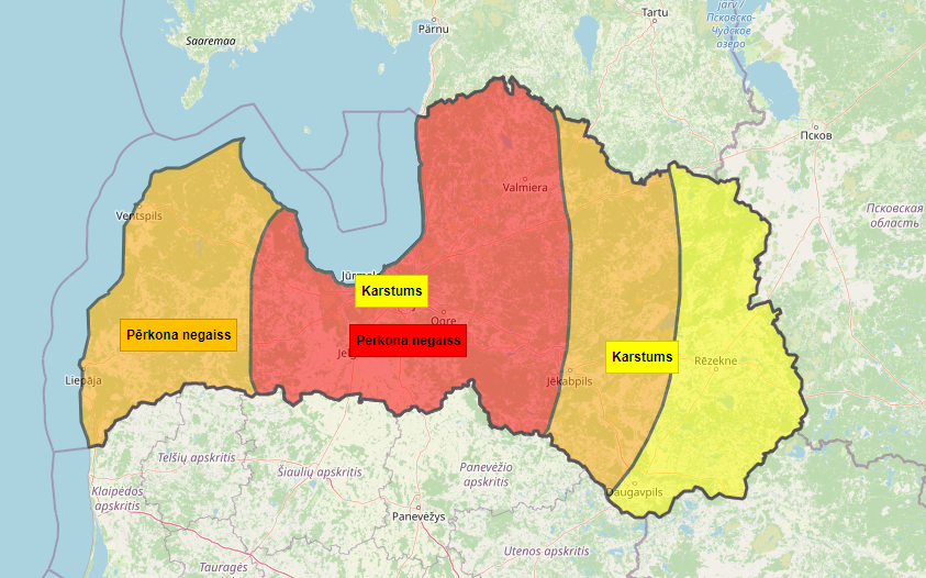 Sinoptiķi brīdina par iespējamām ekstremāli stiprām lietusgāzēm un pērkona negaisu Latvijas centrālajos rajonos, tostarp Jēkabpils novadā. Teritorijā ir izsludināts sarkanais brīdinājums.