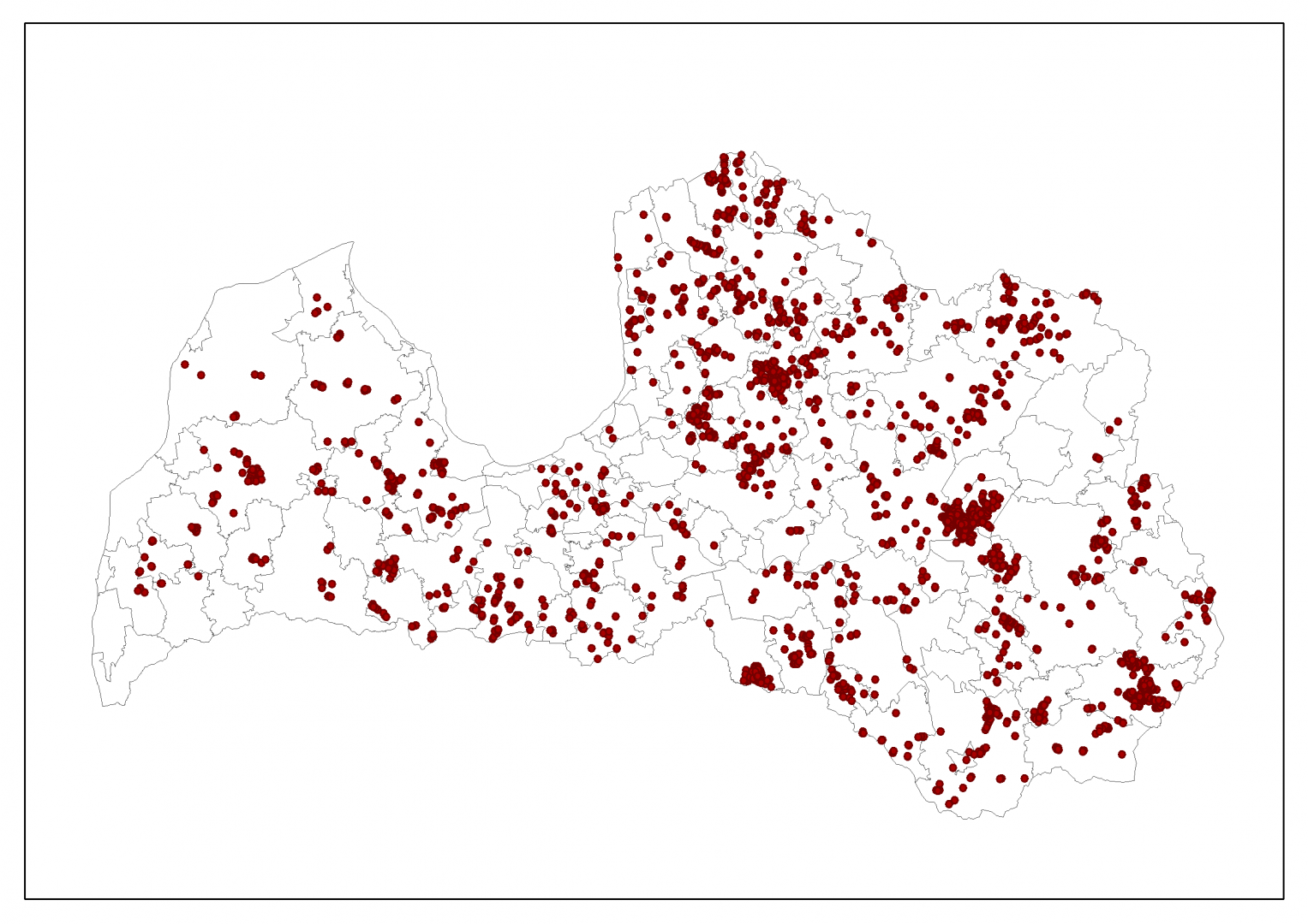 Sosnovska latvāni invadēto teritoriju mērījumu vietas: