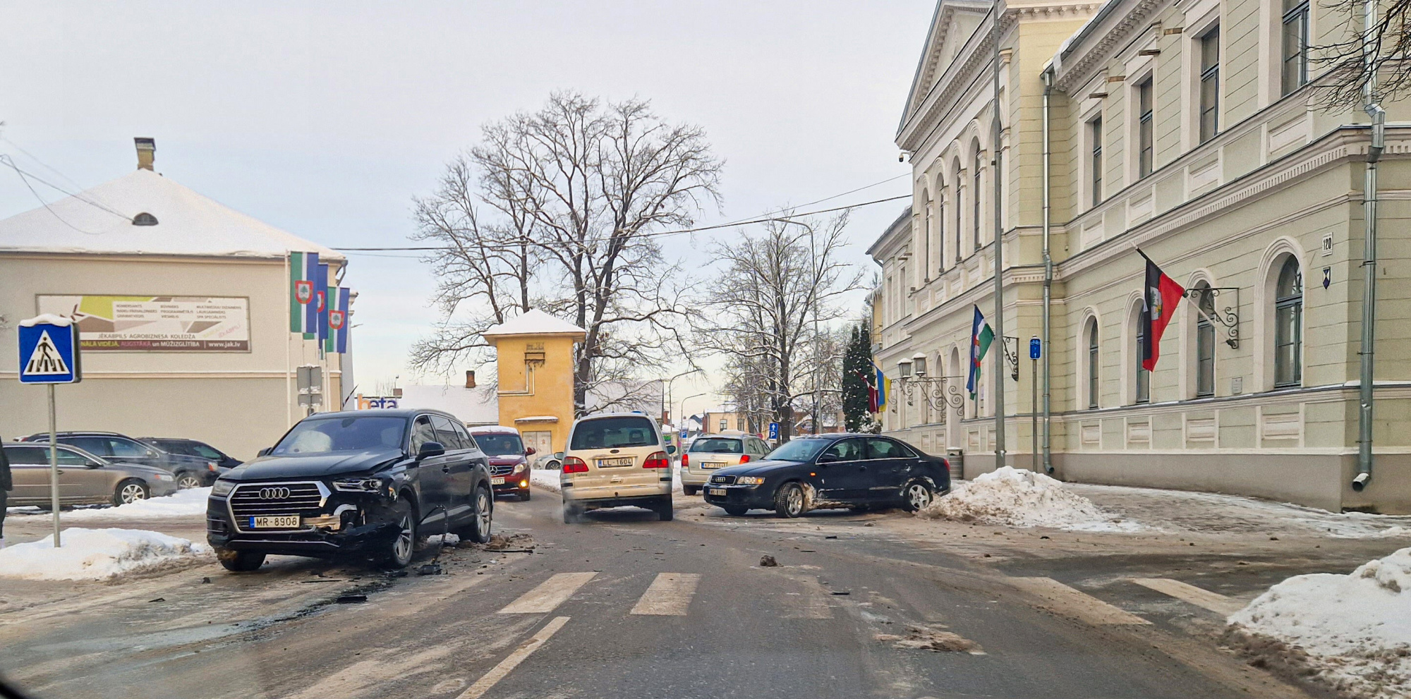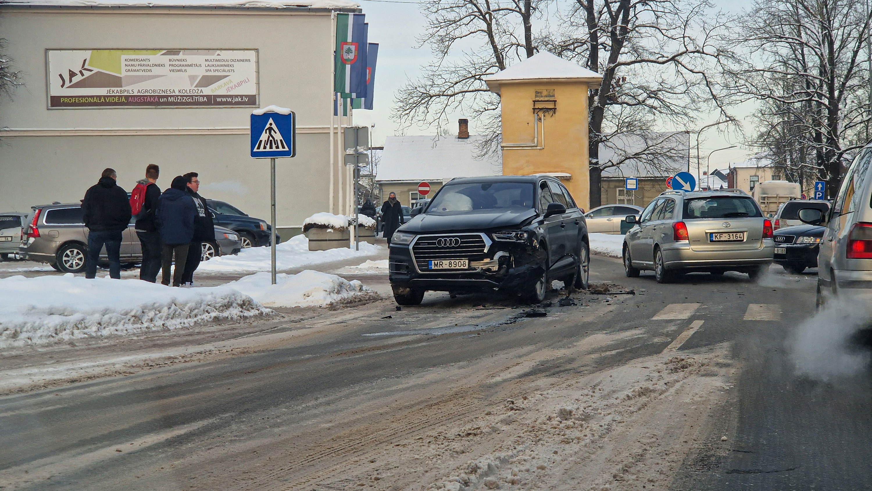 Trešdien Jēkabpilī, Brīvības ielā, pie Jēkabpils novada domes, notika ceļu satiksmes negadījums (fotogrāfijās). Valsts policijā informē, ka sadūrušās divas “Audi” markas automašīnas – “Audi Q7” un “Audi A4”. Saskaņā ar sākotnējo informāciju, negadījumā neviens cilvēks nav guvis traumas, bet ir bojāti abi transportlīdzekļi. Policija skaidro avārijas iemeslus.