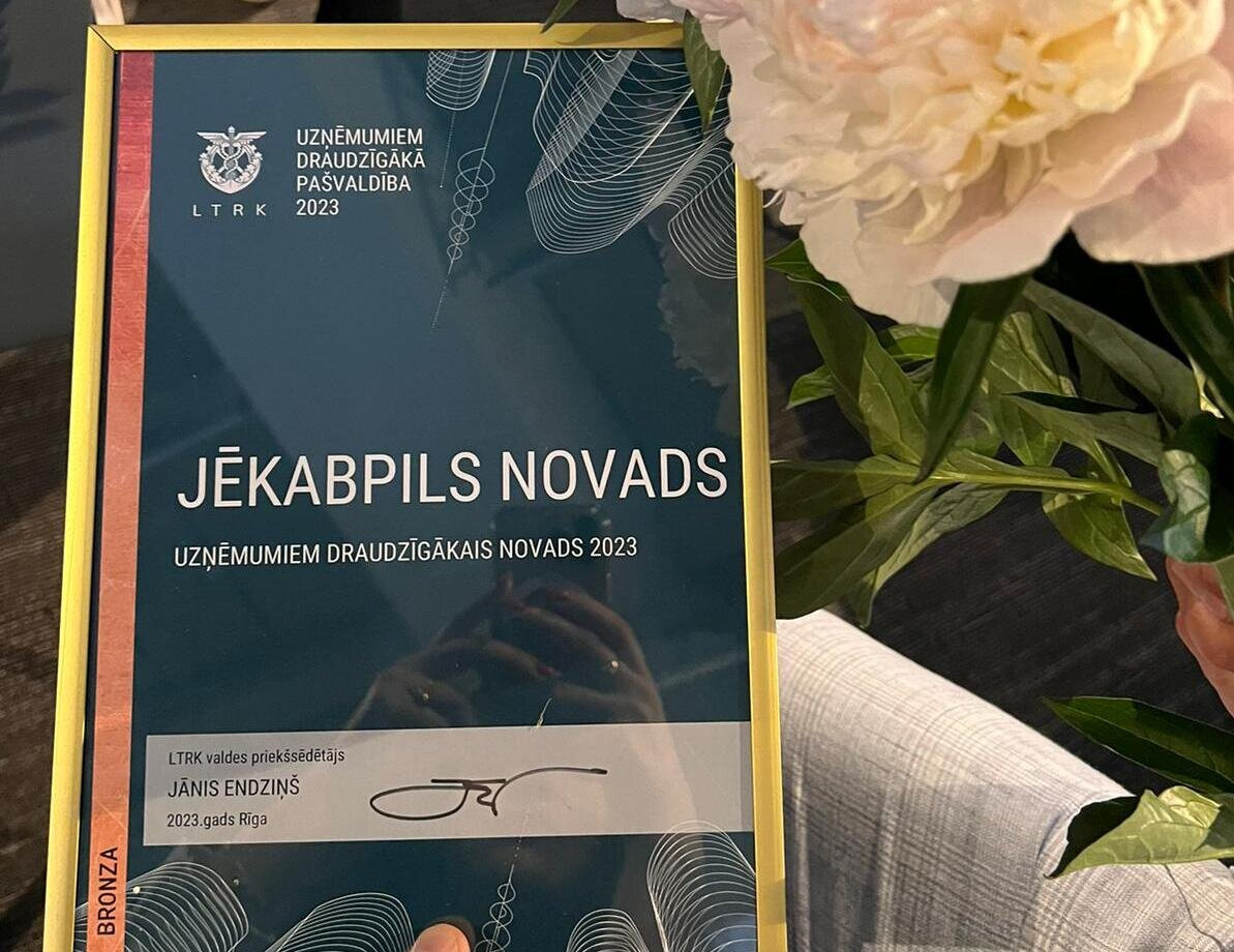 Jēkabpils novada pašvaldība konkursā “Uzņēmējiem draudzīgākā pašvaldība” saņēmusi bronzas godalgu kategorijā “Uzņēmumiem draudzīgākais novads 2023”. Balvu saņēma Jēkabpils novada domes priekšsēdētājs Raivis Ragainis. Pašvaldības tika vērtētas pēc tādiem kritērijiem kā pašvaldības atbildes uz uzņēmēja interesi attīstīt biznesu konkrētajā reģionā, pašvaldības atbalsts izglītības iestādēm uzņēmējdarbības programmu īstenošanā un skolēnu mācību uzņēmumu organizēšanā, uzņēmēju vērtējums un reģistrēto uzņēmumu daudzums konkrētajā pašvaldībā. Uzņēmējiem draudzīgākās pašvaldības sveica Latvijas Tirdzniecības un rūpniecības kamera kopā ar sadarbības partneriem.