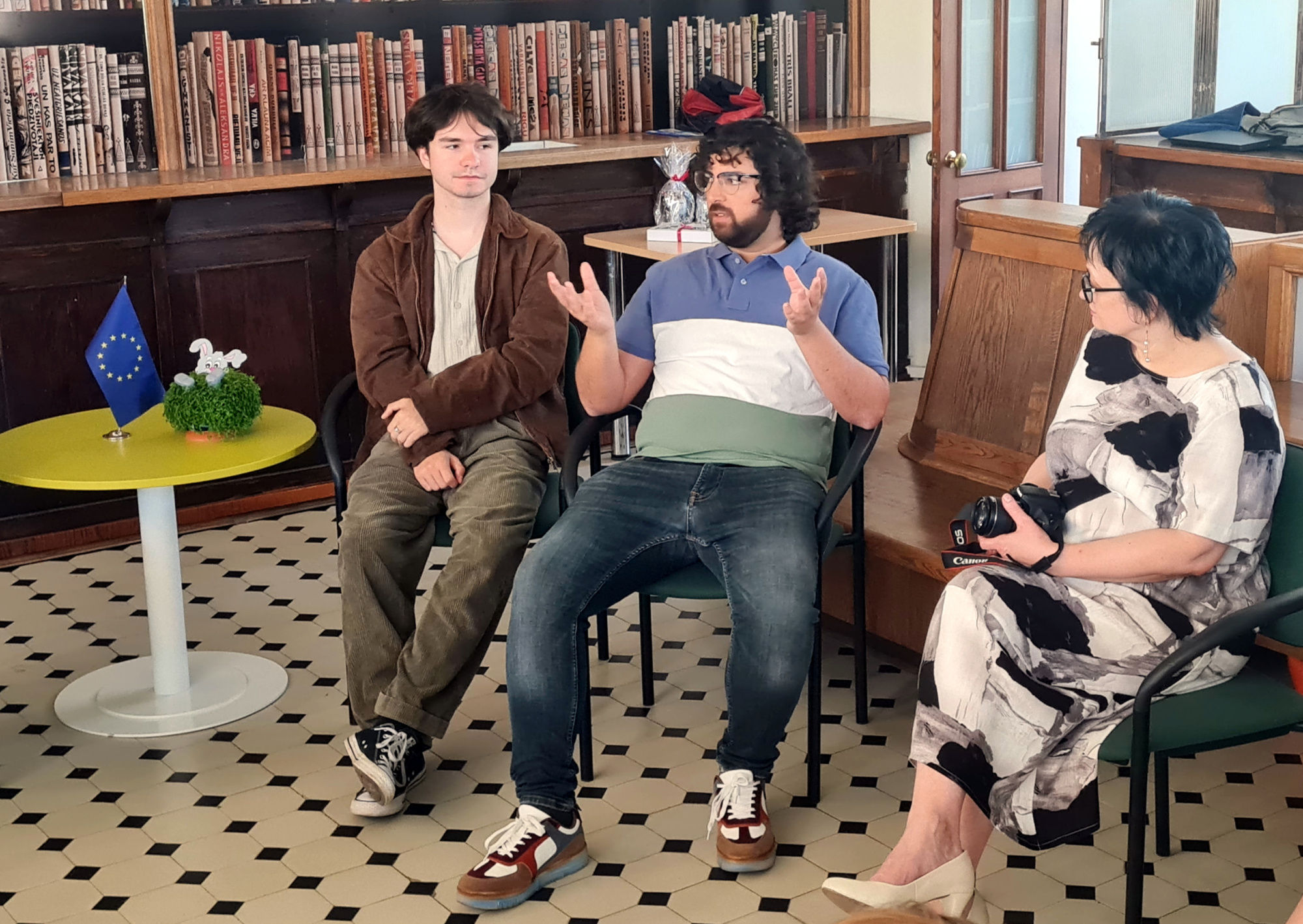 Jēkabpils pilsētas bibliotēkā aizvadīta saruna “Kopā Eiropā”, kurā jēkabpiliešiem bija iespēja tikties ar Eiropas solidaritātes korpusa brīvprātīgajiem jauniešiem – Oskaru no Francijas, Leonardo no Portugāles un Jākobu no Itālijas. Visi trīs jaunieši astoņus mēnešus pavada Jēkabpilī, veicot dažādus darbus biedrības "Vidusdaugavas NVO centrs" projektā “Brīvprātīgie pievieno vērtību”. Šajā pasākumā viņiem bija iespēja iepazīt tuvāk latviešu tradīcijas.