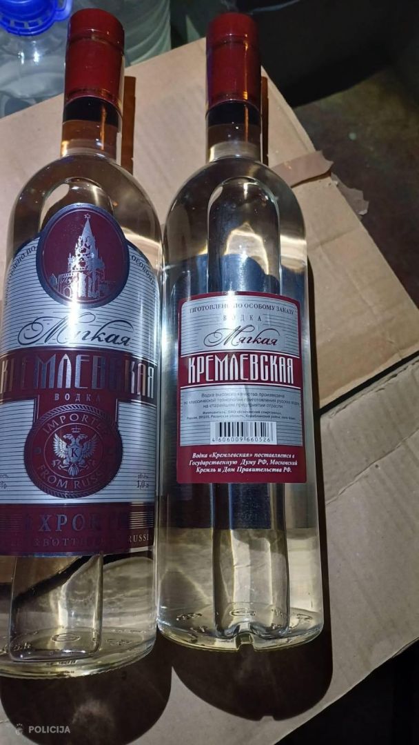 Arī izņemtā alkohola sortiments nebija vienveidīgs. Tostarp tās bija 96 viena litra tilpuma "XP-10" pudeles, 12 "Kremlyovskaya" markas viena litra tilpuma pudeles un 55 piecu litru pudeles ar nezināmas markas šķidrumu, kam ir alkoholam raksturīga smaka.