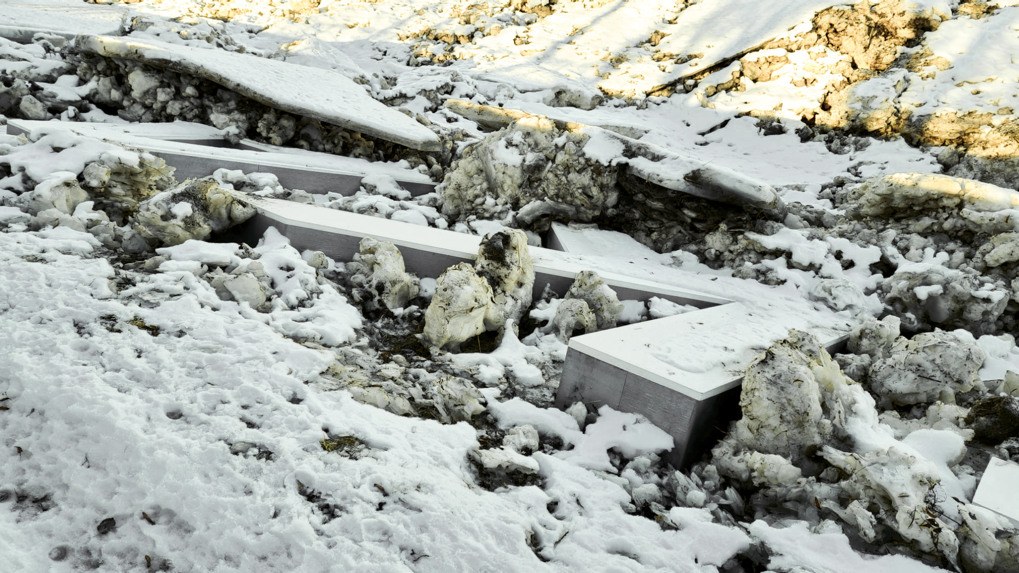 Kopš 2021.gada pavasara Jēkabpils kreisā krasta dambja nogāzi rotā liels uzraksts “Jēkabpils”. Plūdu laikā burtiem pāri gāja gan ūdens, gan vižņu un ledus masa. 14.februārī – mēnesi pēc plūdu kritiskākā brīža – ūdens līmenis Daugavā pazeminājies par vairāk nekā pieciem metriem, sasniedzot 3 metrus 24 centimetrus, bet lielai daļai burtu vēl virsū ir ledus gabali un vižņi, tādēļ pašvaldības speciālisti pagaidām nevar izvērtēt uzraksta bojājumu pakāpi. Ir zināms, ka visi burti plūdus ir izturējuši un palikuši savā vietā. Tā kā elementi ir no metāla un iebetonēti, ūdens tos neaiznesa prom. Jēkabpils novada pašvaldības vadība skaidro, ka precīzus bojājumus varēs redzēt tad, kad nokusīs ledus, jo šajā dambja posmā nav paredzēts ledus gabalus ņemt nost ar ekskavatoru. Pēc tam, kad uzraksts būs apsekots, tiks lemts par nepieciešamajiem atjaunošanas darbiem.