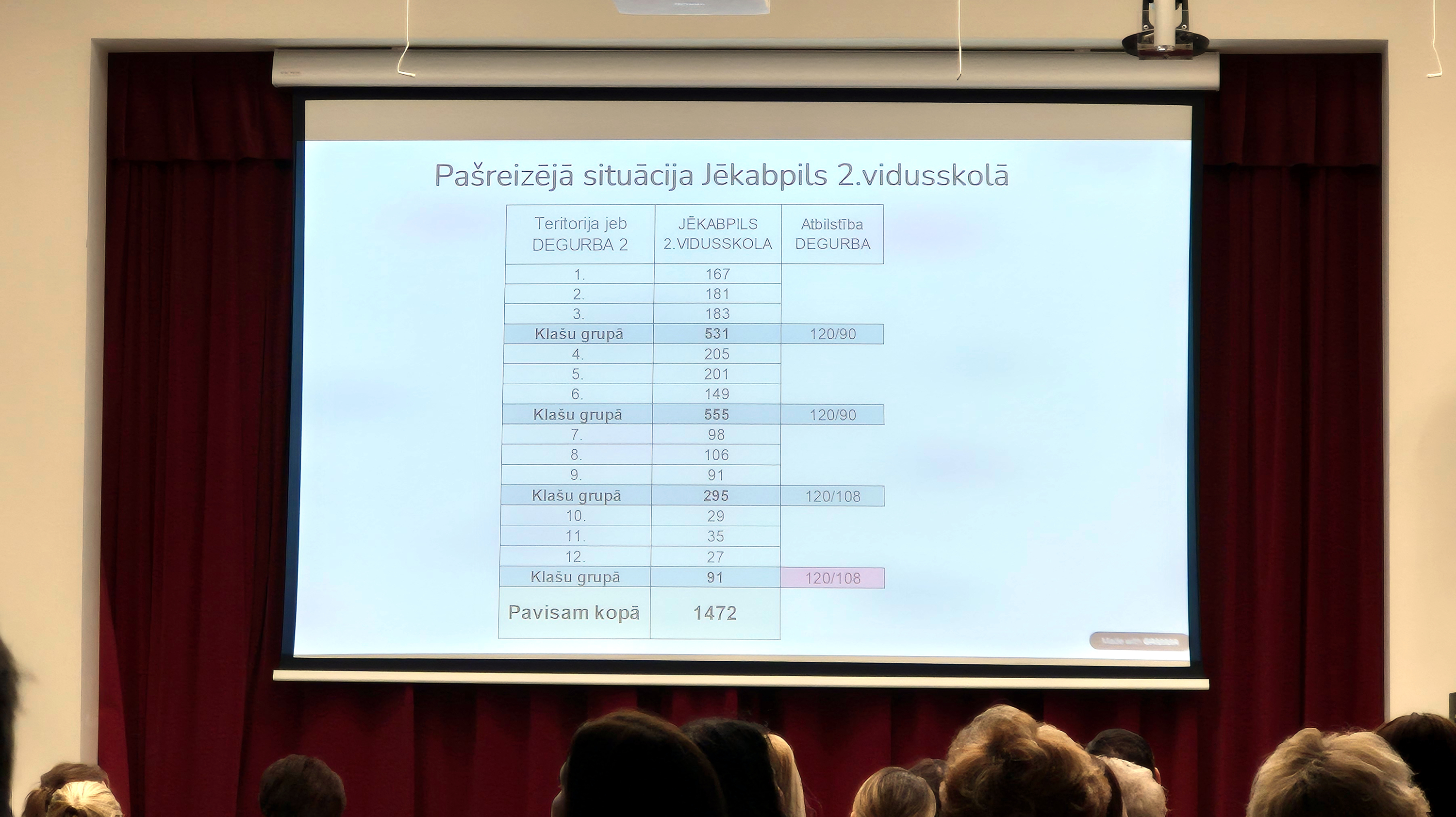 “Jēkabpils pilsētai ir 2. DEGURBA, kas nosaka, ka vidusskolas posmā jābūt 120 skolēniem, pieļaujamā nobīdes norma ir 10 procenti, tātad 108 skolēniem no 10. līdz 12. klasei. Šobrīd 2. vidusskolā ir 91 skolēns šajā posmā,” informē Jēkabpils novada Izglītības pārvaldes vadītāja Aija Voitiške.